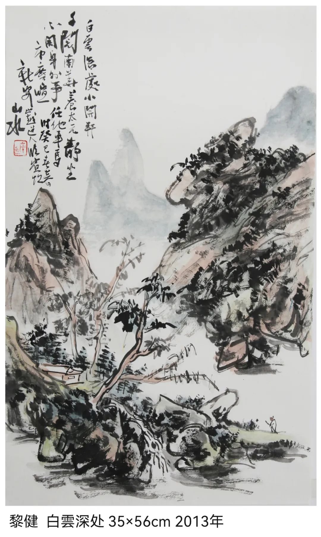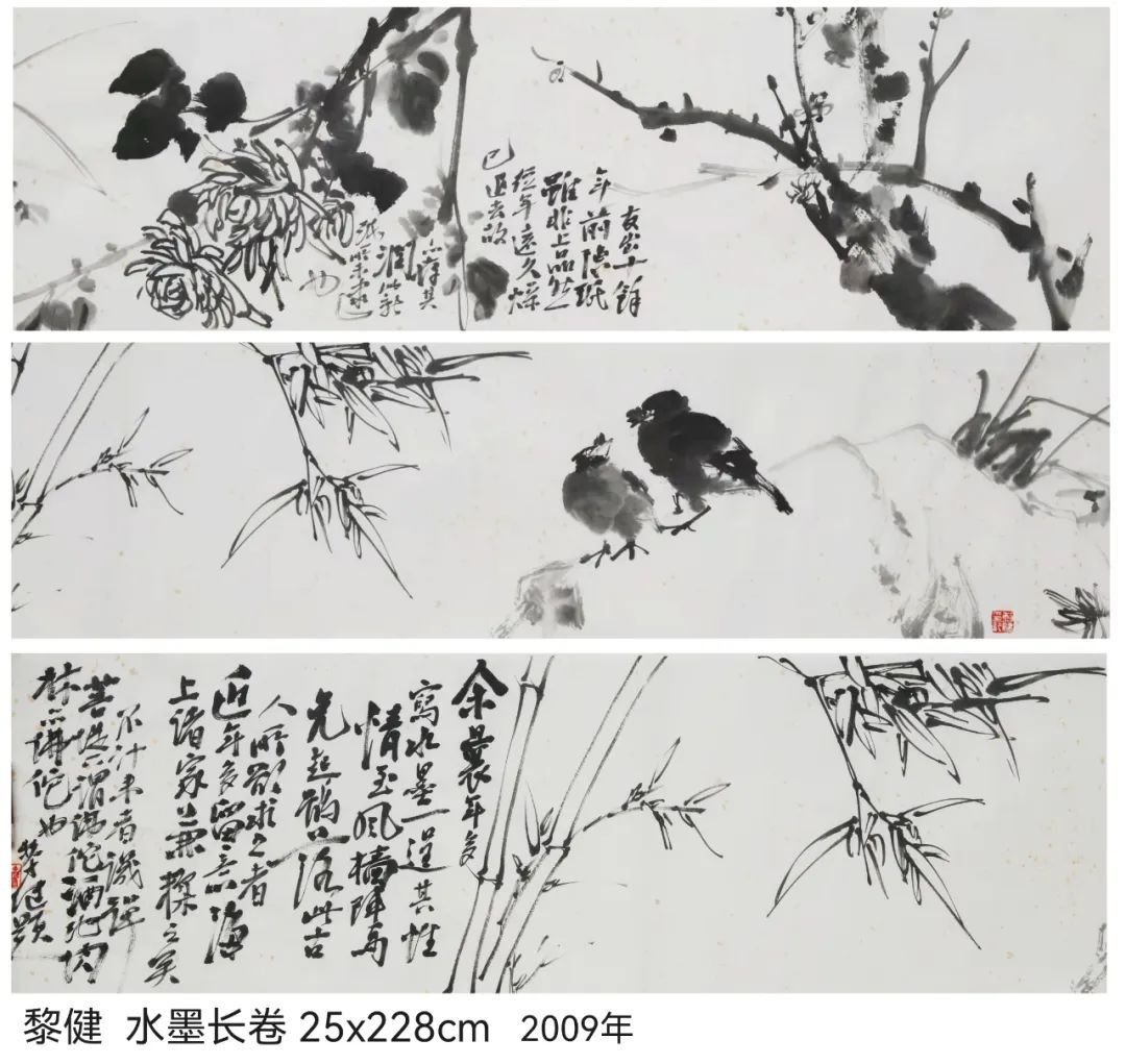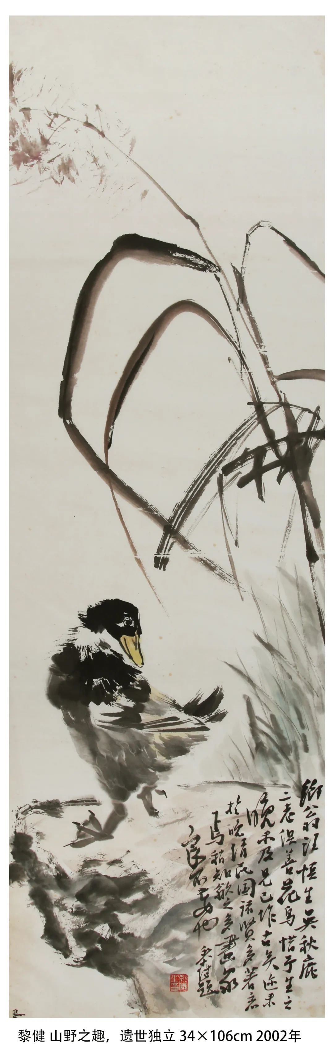看黎健的画,有一种乘兴而挥、挥而未尽的感觉。他的线是极赋功底的书法用笔,这种自由而灵动的点线是书法功力和天赋悟性的高度结合,是当今所谓“名家”很难企及的。黎健的作品,取古人之法为己所用,在规矩中纯应自然,不假修饰,画面中显现出的激情和热情、恬淡和率真,既体现了中国绘画的民族性,也体现了作者本人艺由文修的创作精神!
