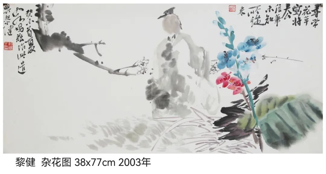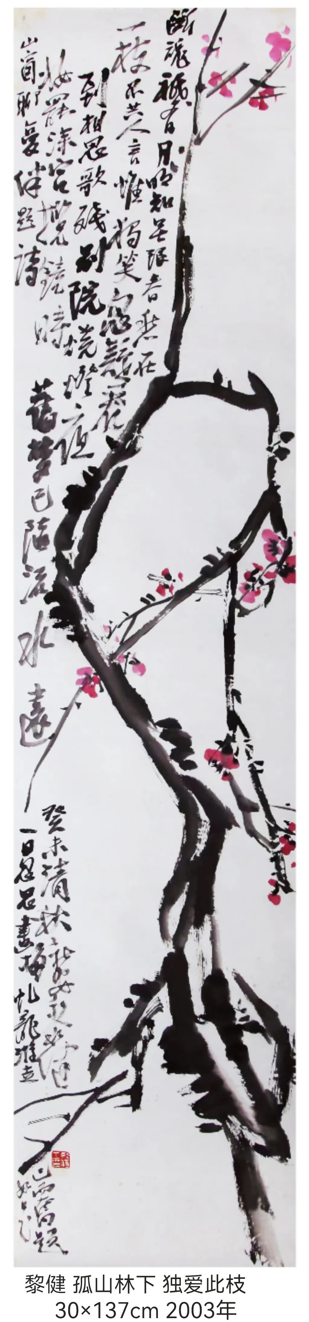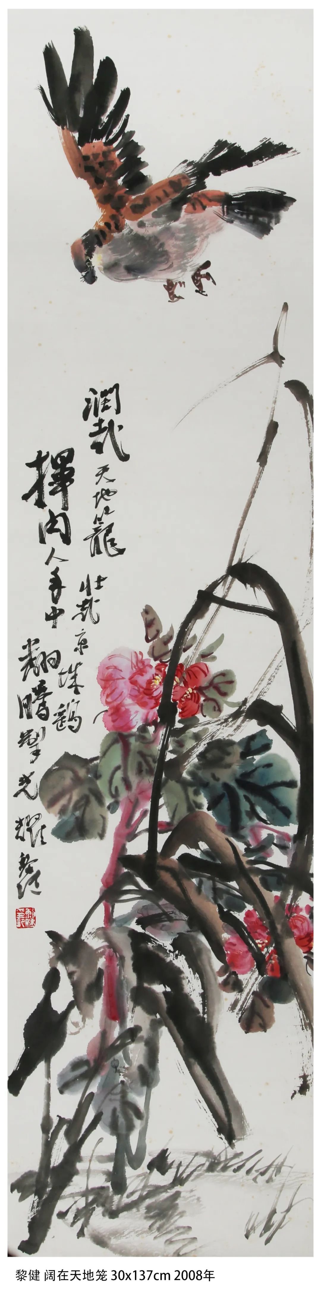 看黎健的画,有一种乘兴而挥、挥而未尽的感觉。他的线是极赋功底的书法用笔,这种自由而灵动的点线是书法功力和天赋悟性的高度结合,是当今所谓“名家”很难企及的。黎健的作品,取古人之法为己所用,在规矩中纯应自然,不假修饰,画面中显现出的激情和热情、恬淡和率真,既体现了中国绘画的民族性,也体现了作者本人艺由文修的创作精神!
