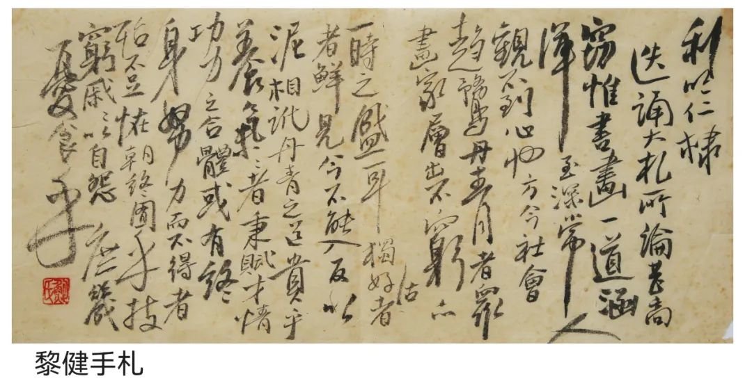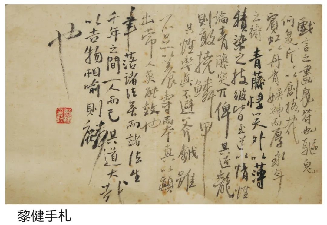 黎健有不世之才……书画文字皆非时流所逮,开卷恍如对古人。丹青笔简而意远,书法意在清湘、天池之间,极见恣放颠颓。如此水准,当使今号为能书者避席耳!