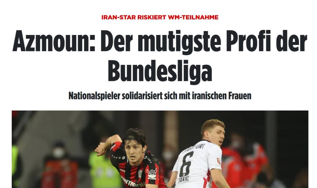 ▲效力于德甲勒沃库森的伊朗国脚阿兹蒙支援阿米尼