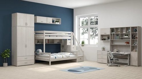 为了预留出充足的活动空间,我们最好将儿童房家具贴墙摆放,同时儿童天生好奇心强,我们最好在家具背部加装防倾倒装置,避免小朋友攀爬导致家具倾倒。