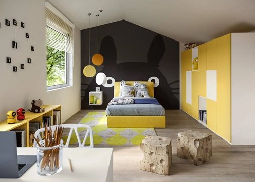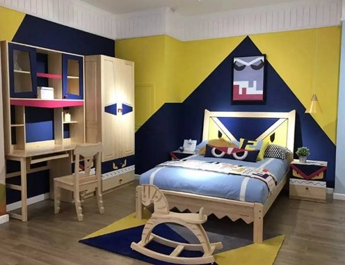 儿童家具设计应该符合人体工程学原理,尽可能减少过多元化设计元素,保留基础家居功能,为儿童打造简净舒适的就寝环境;出于实用性能考虑,我们可以选择“成长性”的家具款式,满足儿童不同时期的使用需求。