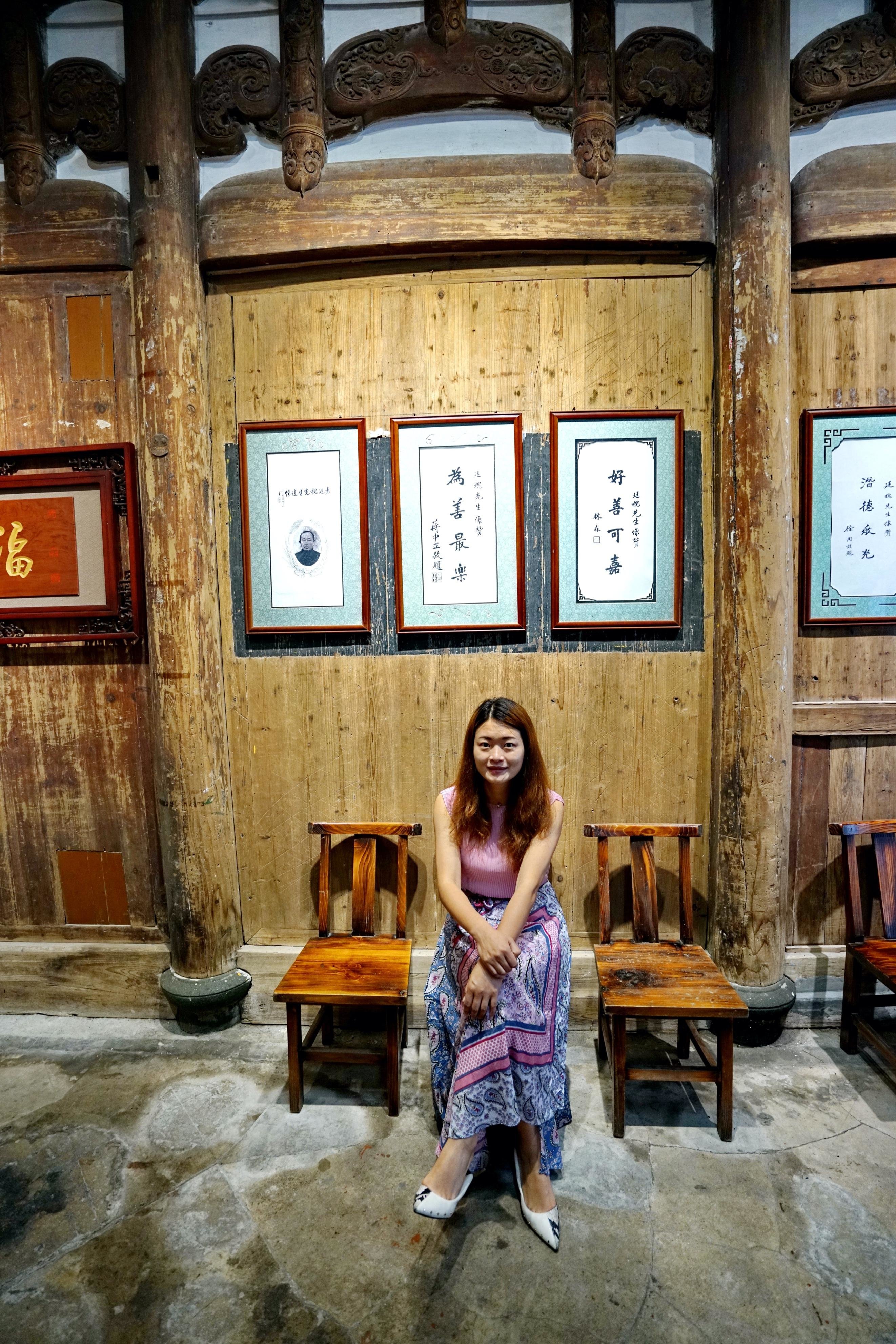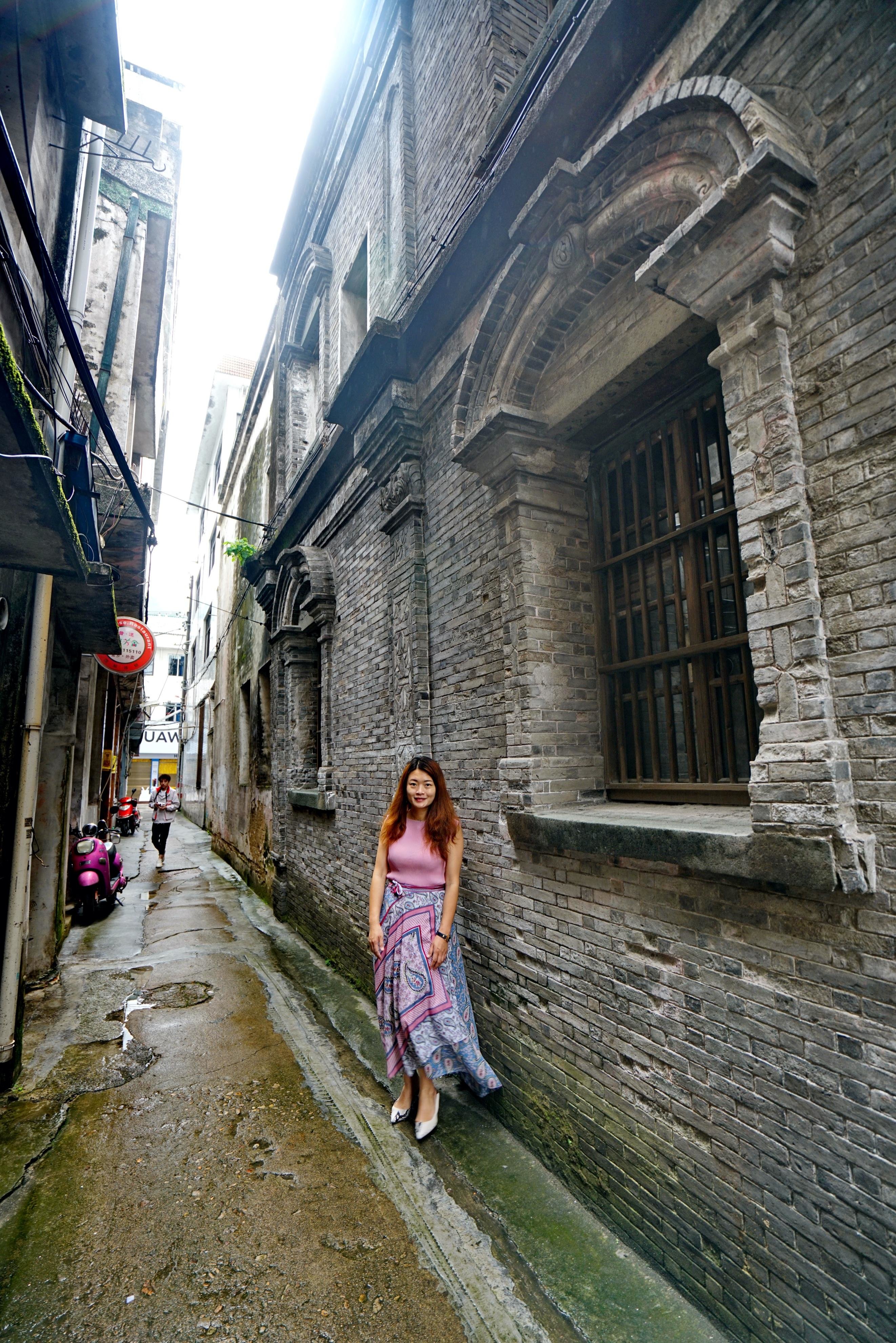 从袁宅出来时,还不忘在这有年代感的青砖墙旁留影一张。