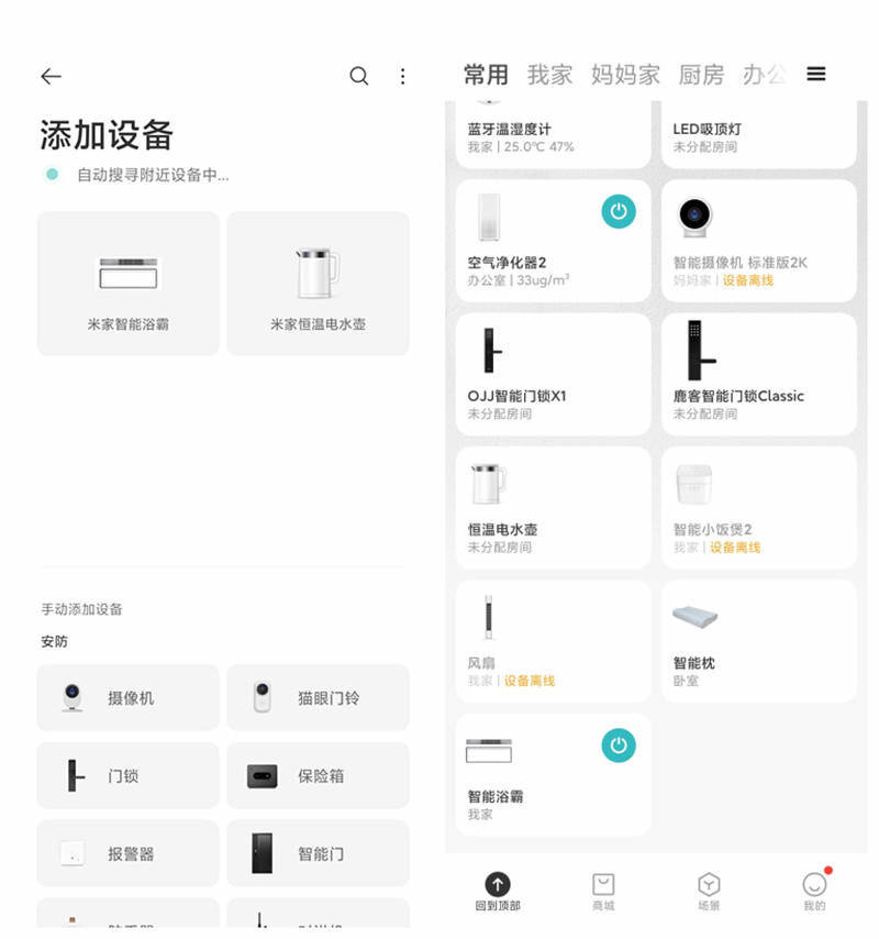 米家产品自然支持接入米家APP后,点击添加设备可以自动搜到“米家智能浴霸”图标,连接后即可以手机控制。