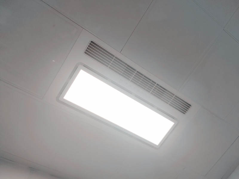 直接上安装后效果,这款浴霸采用了52cm超长出风口设计,提高了暖风送风效率。照明使用的是色温4000K的自然暖白光,除了亮度支持无级调节外,显色指数也达到了 Ra90,温和不刺眼,有正常照明和夜间照明两种模式,满足不同场景需求。