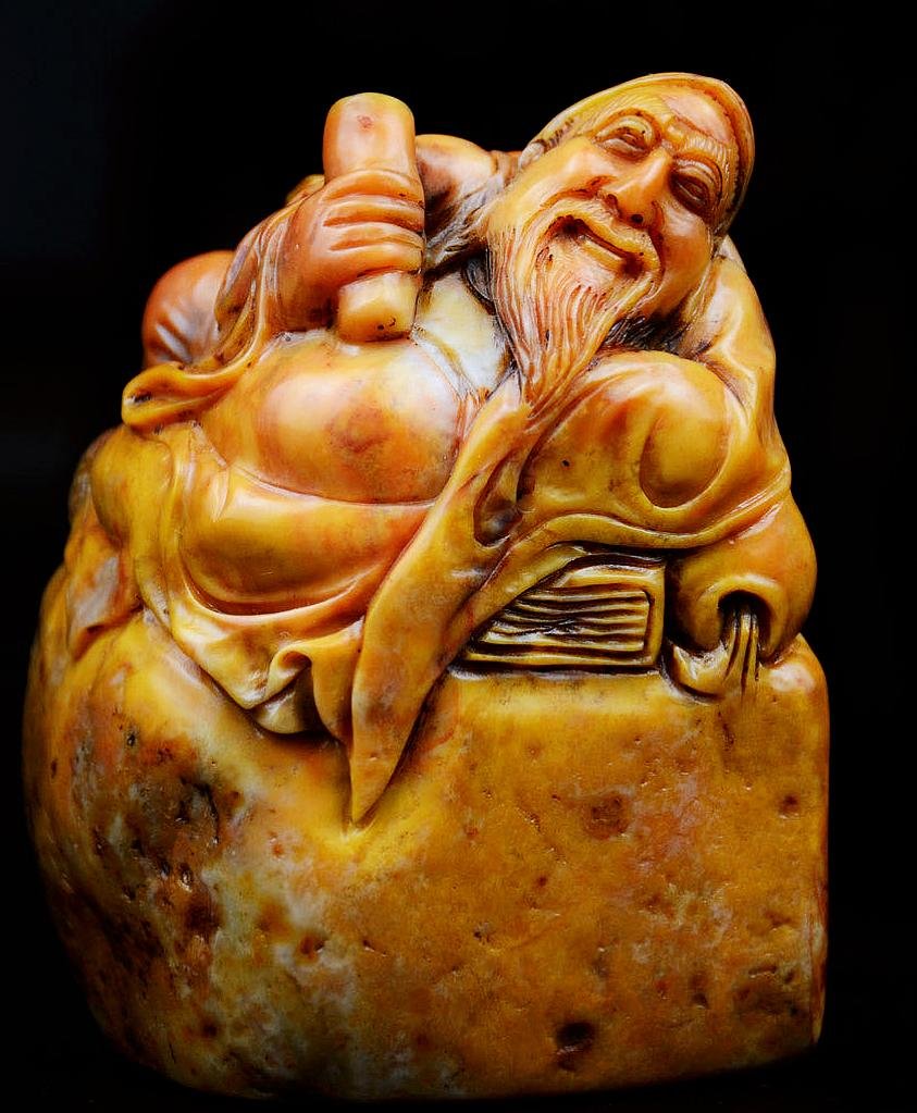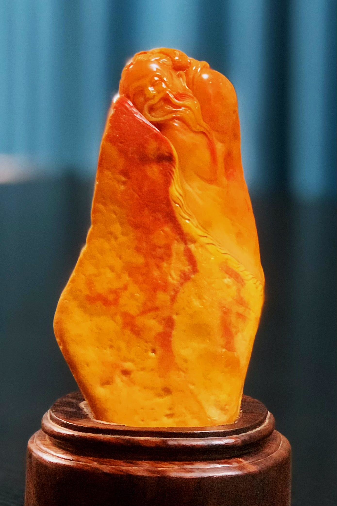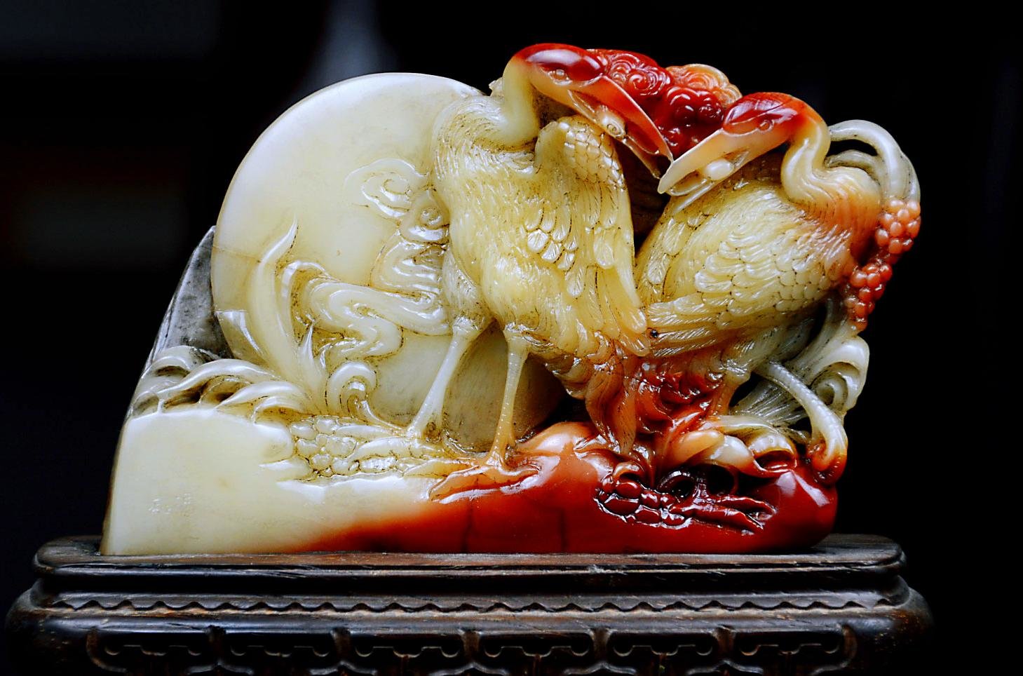 寿山石雕收藏家黄坚说:寿山石天生丽质,五彩斑斓、温润脂凝,是我国珍贵的彩宝石。历代的雕刻家匠心独运、巧夺天工,赋予寿山石艺术品极高的艺术欣赏和珍玩收藏价值,因此,寿山石艺术品深受历代文人墨客乃至帝王贵族的喜爱。寿山石艺术品以其美丽的外表、丰富的文化内涵,被誉为中国四大“国石”候选石之首。
