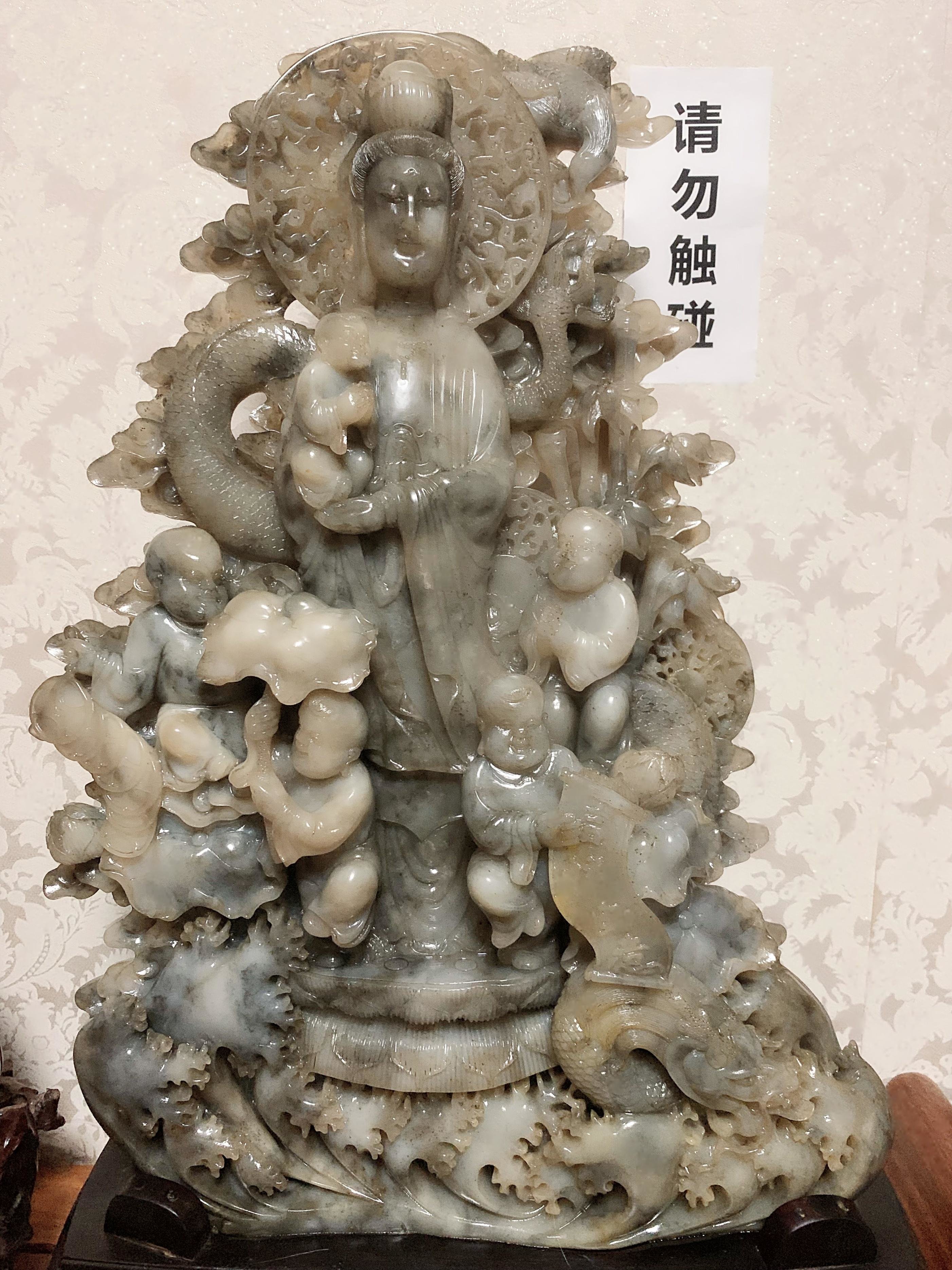 中国工艺美术大师寿山石坑头石大型雕刻作品《送子观音》
