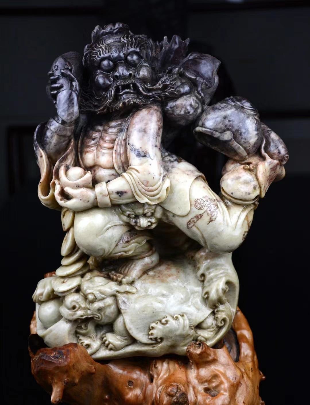 寿山石焓红石大型雕刻老工作品《魁星点斗》