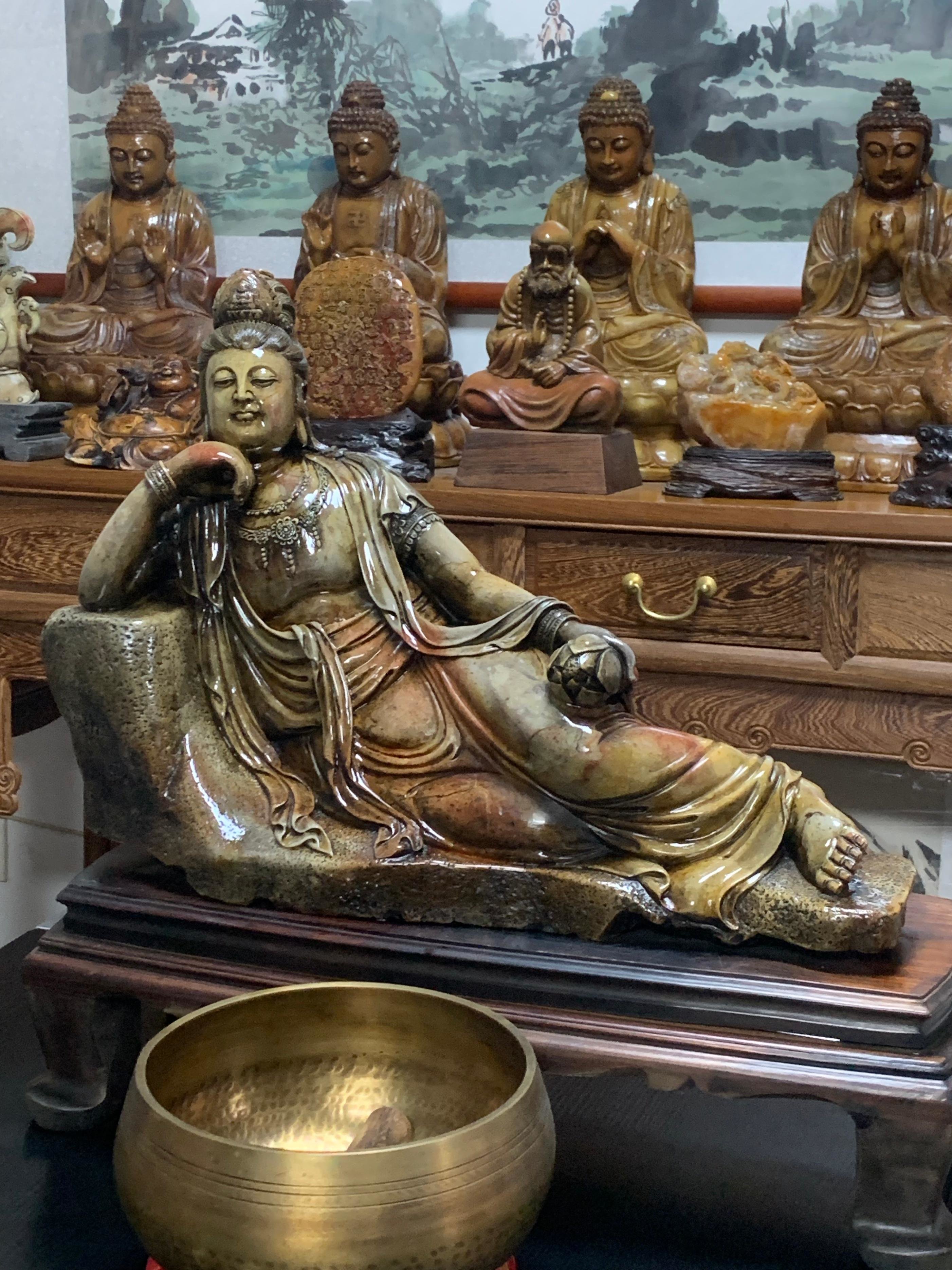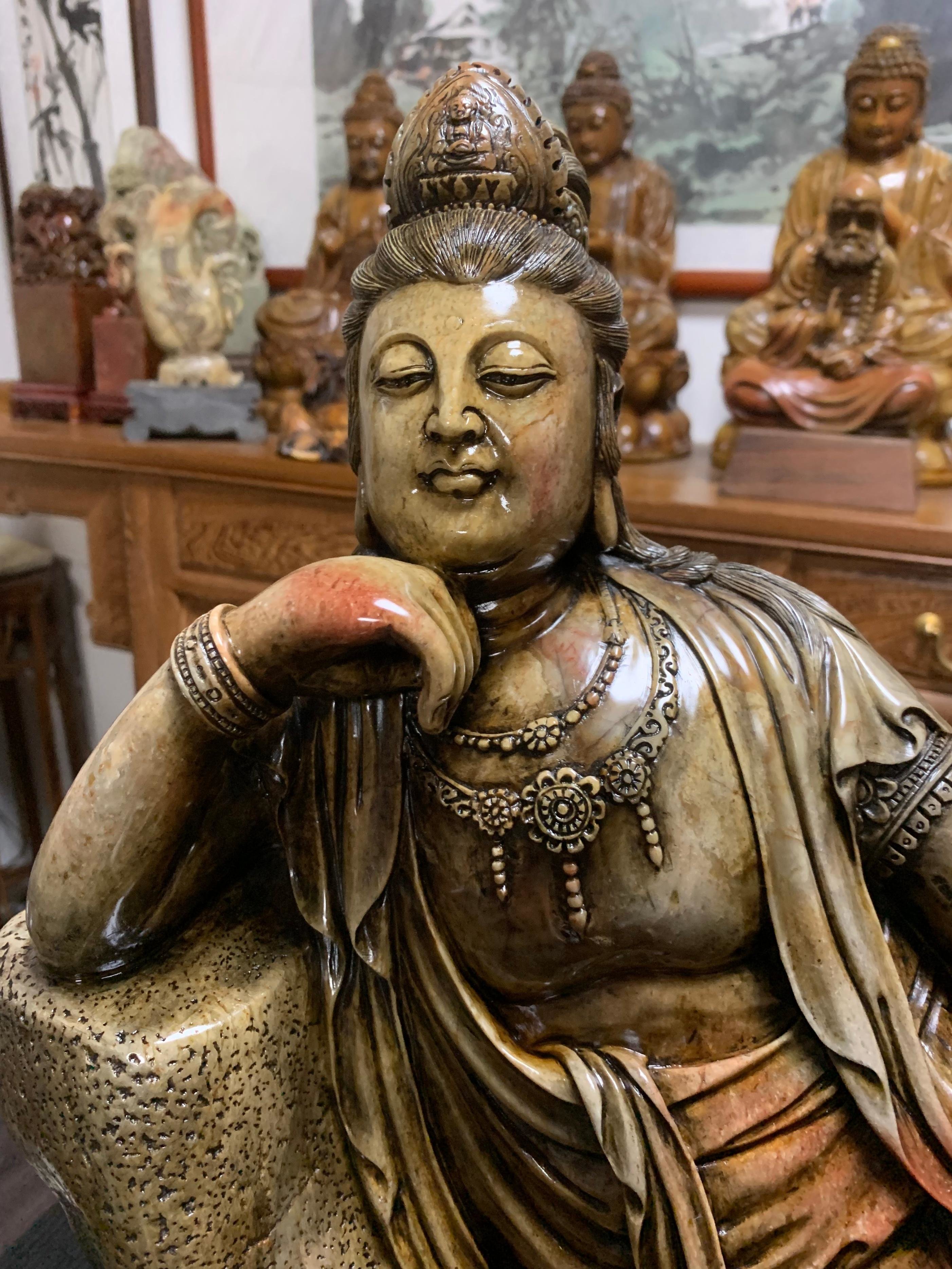 令人震撼的经典寿山石老工精工雕刻作品《自在观音》