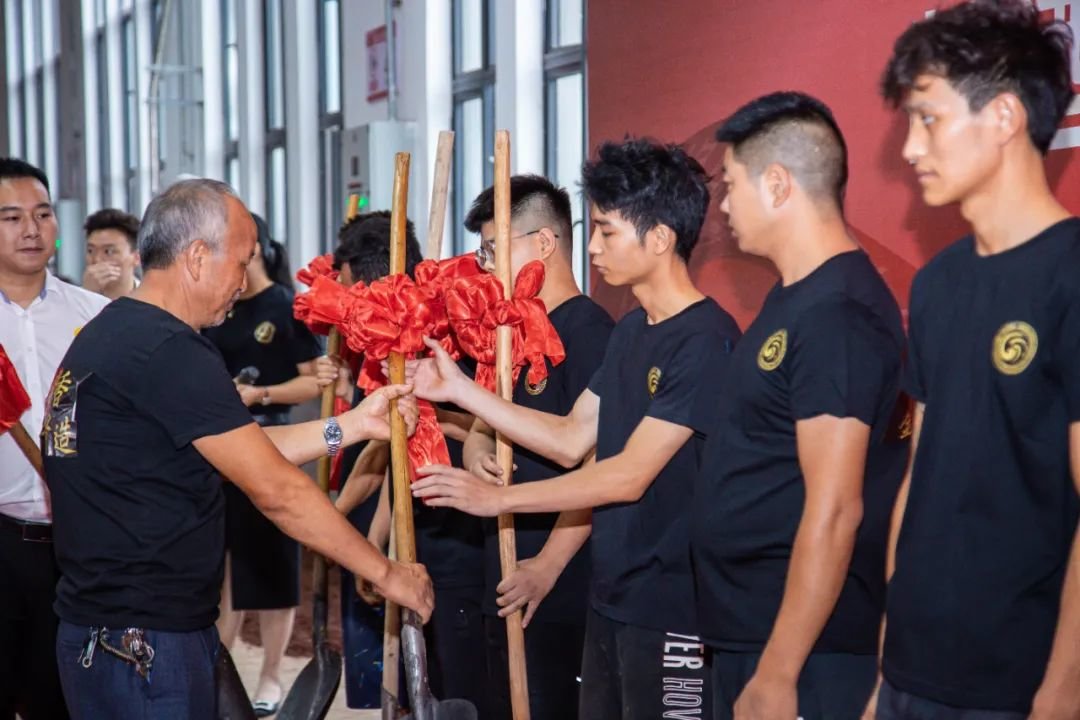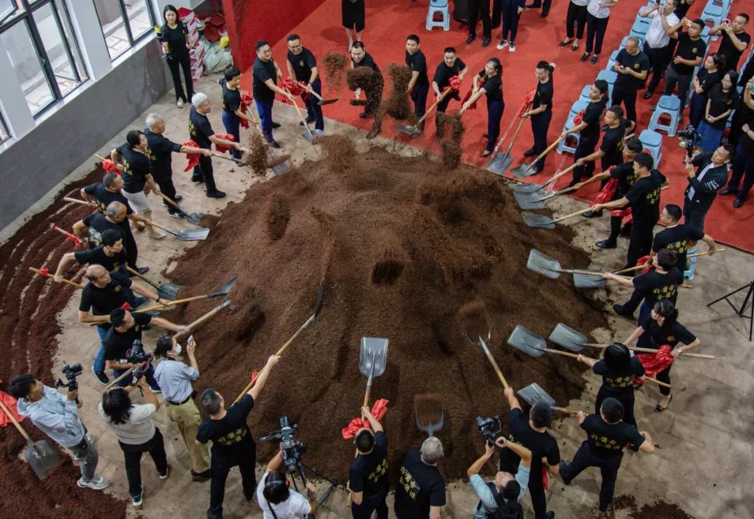 在“老师授锨”环节,金酱酒业副总经理、制酒总工王云明向10位年轻制酒工人颁授了佩着红绸的制酒铁锨。在“齐颂明志”环节,出席活动的全体金酱员工集体诵读明志词。在“下沙上堆”环节,金酱酒业经营班子和各销售大区经理共同参加下沙上堆劳动。开工投产活动在汪洪彬、汪传捷父子共同敲响开工锣的“鸣锣开工”环节中圆满结束。