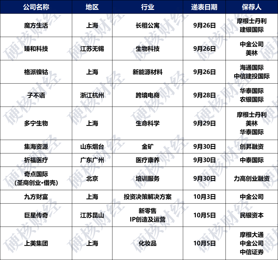 近两周共有11家公司在港交所递交上市申请,分别是: