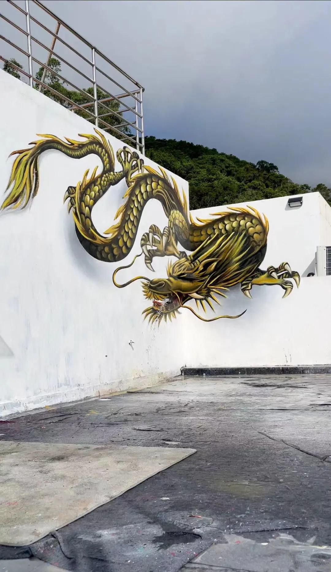 白墙天台,一头巨龙伸出利爪,彷佛活了一般;