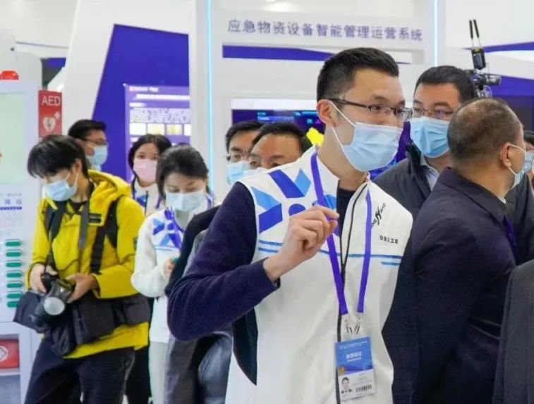 △ 2021年在深圳会展中心为来宾介绍公益项目的杨明川(前排左一)