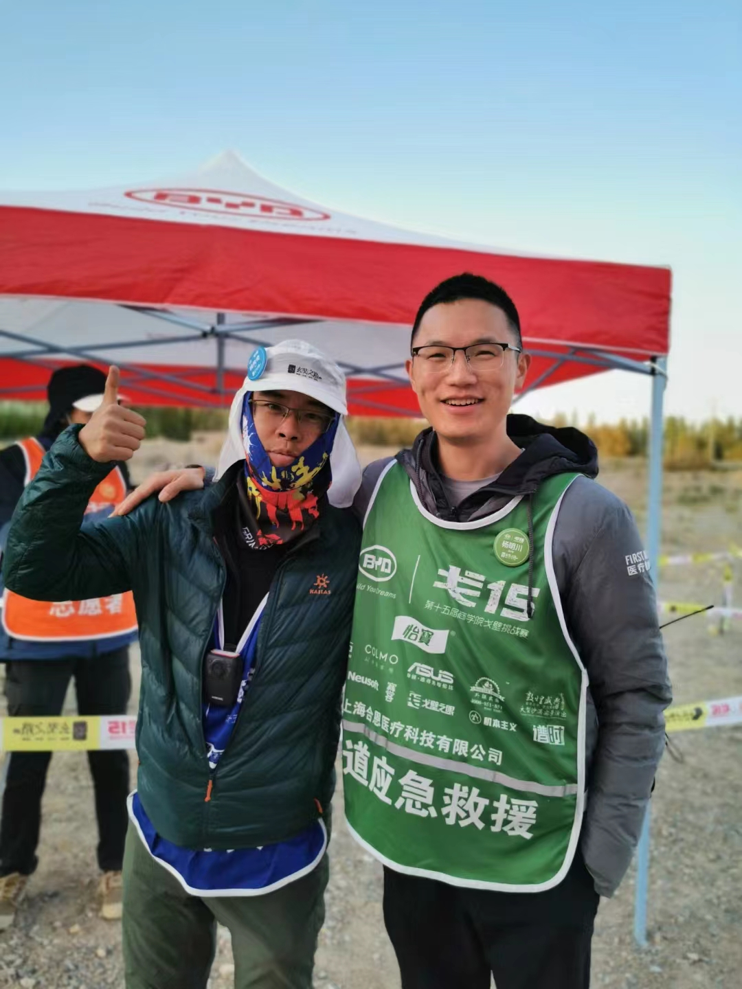 △ 2021年在酒泉市瓜州县做公路应急救援志愿者的杨明川(右一)