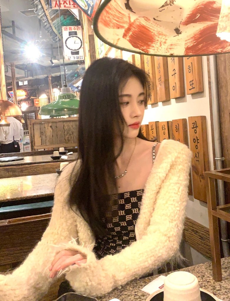 鞠婧祎元气休闲造型餐厅随拍 长发披肩对镜托腮温柔甜美