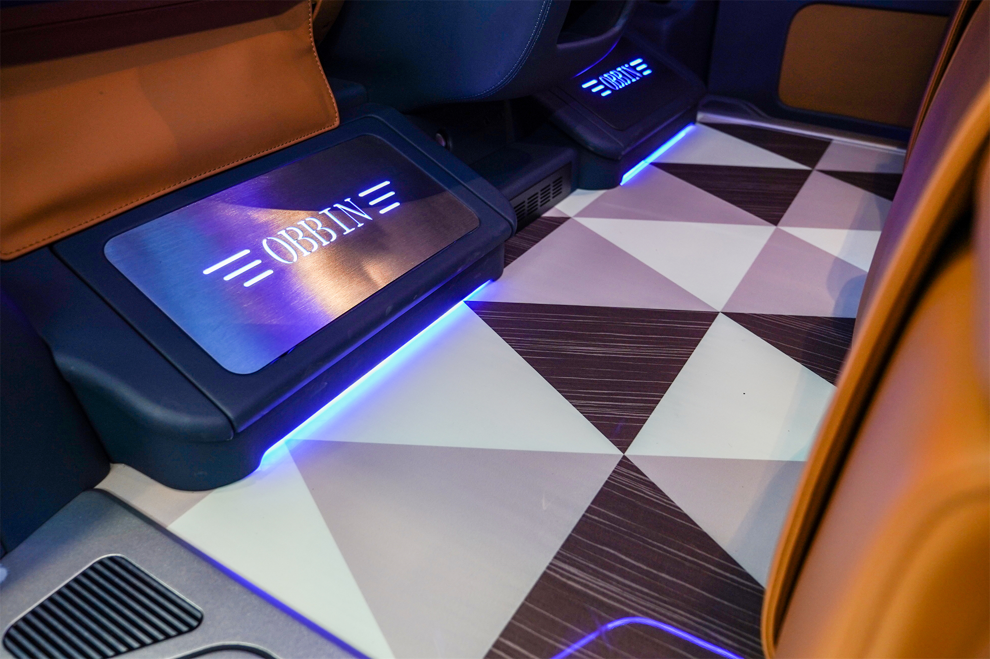 想要有质感,内饰一定要大改。印花拼接地板,配上多色可变的顶灯、氛围灯、迎宾灯,加上麂皮绒包覆,看上去非常美观大气。