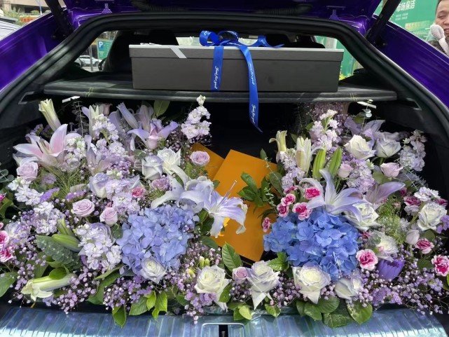 先不说是什么牌子的车了,光这满满车尾箱的鲜花,就让“浪漫”撞了个满怀,恁谁都想“嫁给爱情”,天下有情人终成眷属!