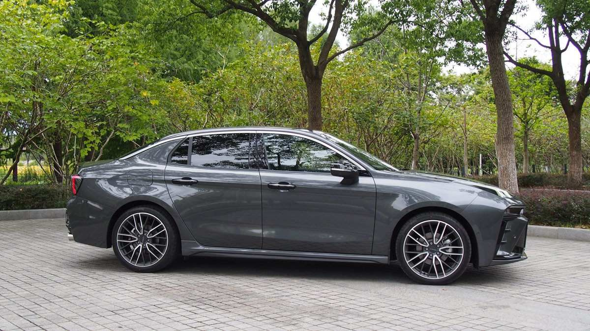 相比前脸,侧面的调整就微乎其微了,换了款轮毂而已,也不算新货,就是把上一代03+的19寸轮毂用在这一代03上,配上马牌MC6轮胎,245的宽度,35的扁平比,妥妥的运动胎。不过,我在这儿给大家一个建议,在不熟悉的铺装路上,别开太快,万一有个坑,那就要换胎了,不便宜,小2000块钱呢。