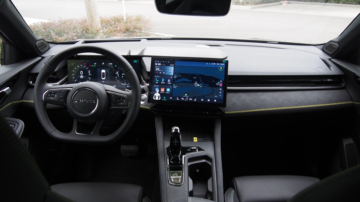 相比外观方面的微调,内饰方面的改进就有点走心了。首先是全系采用高通骁龙8155座舱芯片,响应更快,特别体现在语音互联上,秒听秒回。至于懂不懂,那是语音识别的问题。且全系标配12.8英寸中控屏,支持三屏联动导航,驾驶者有三种看导航的方式:中控屏,液晶仪表或AR-HUD,更方便,驾驶也不容易分心。