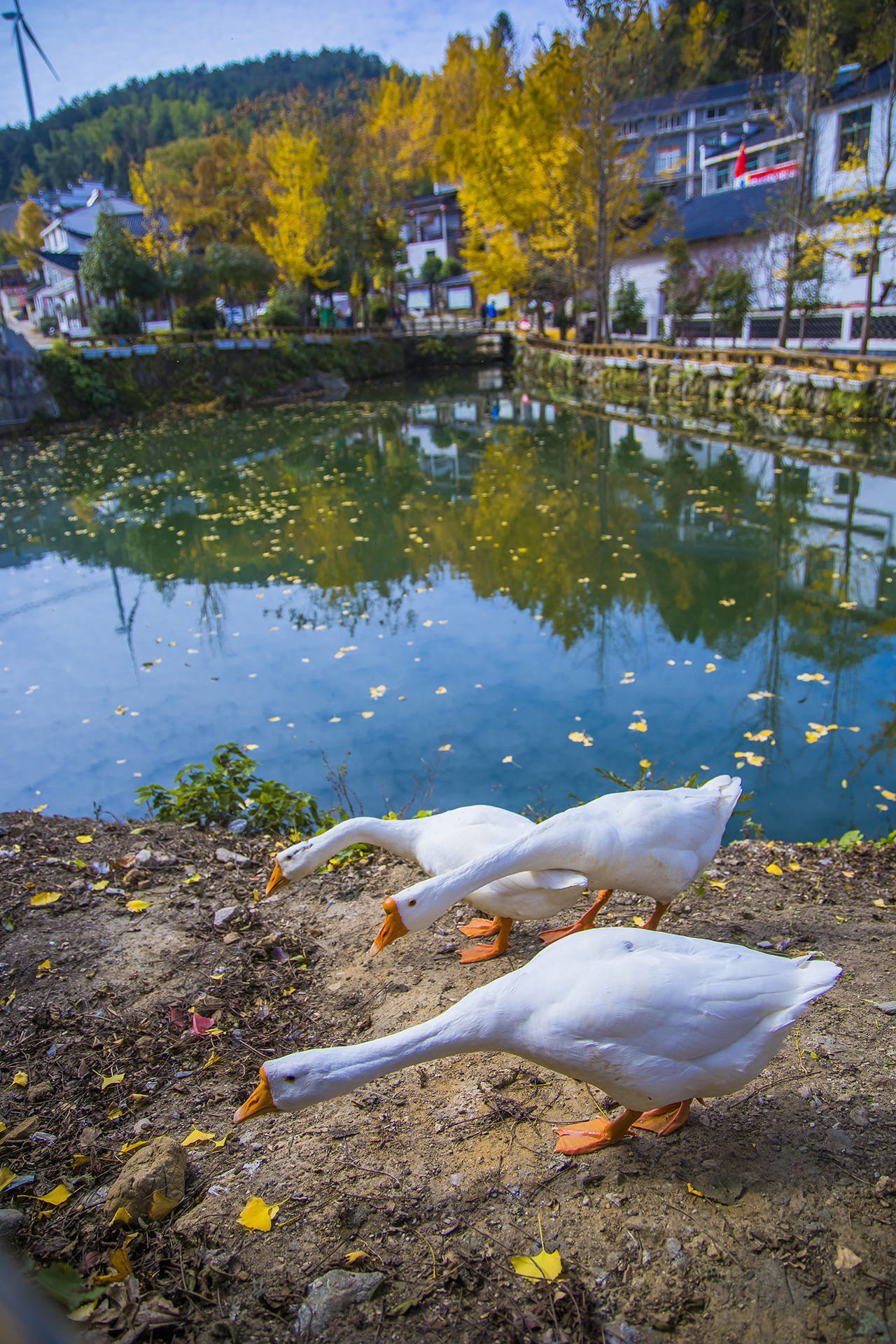 村里处处都是青山绿水,可可爱爱的小鸭子,大白鹅还会在路边水塘边呆呆的看着你,丝毫不怕人似的,农田房屋相映成趣,随手一拍都绝对是大片。