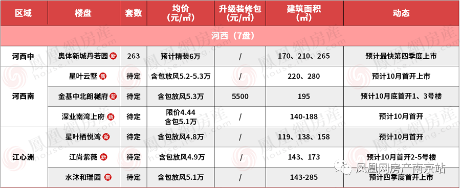 10月份的河西动静不小,据统计,7大纯新盘或都将在本月入市。