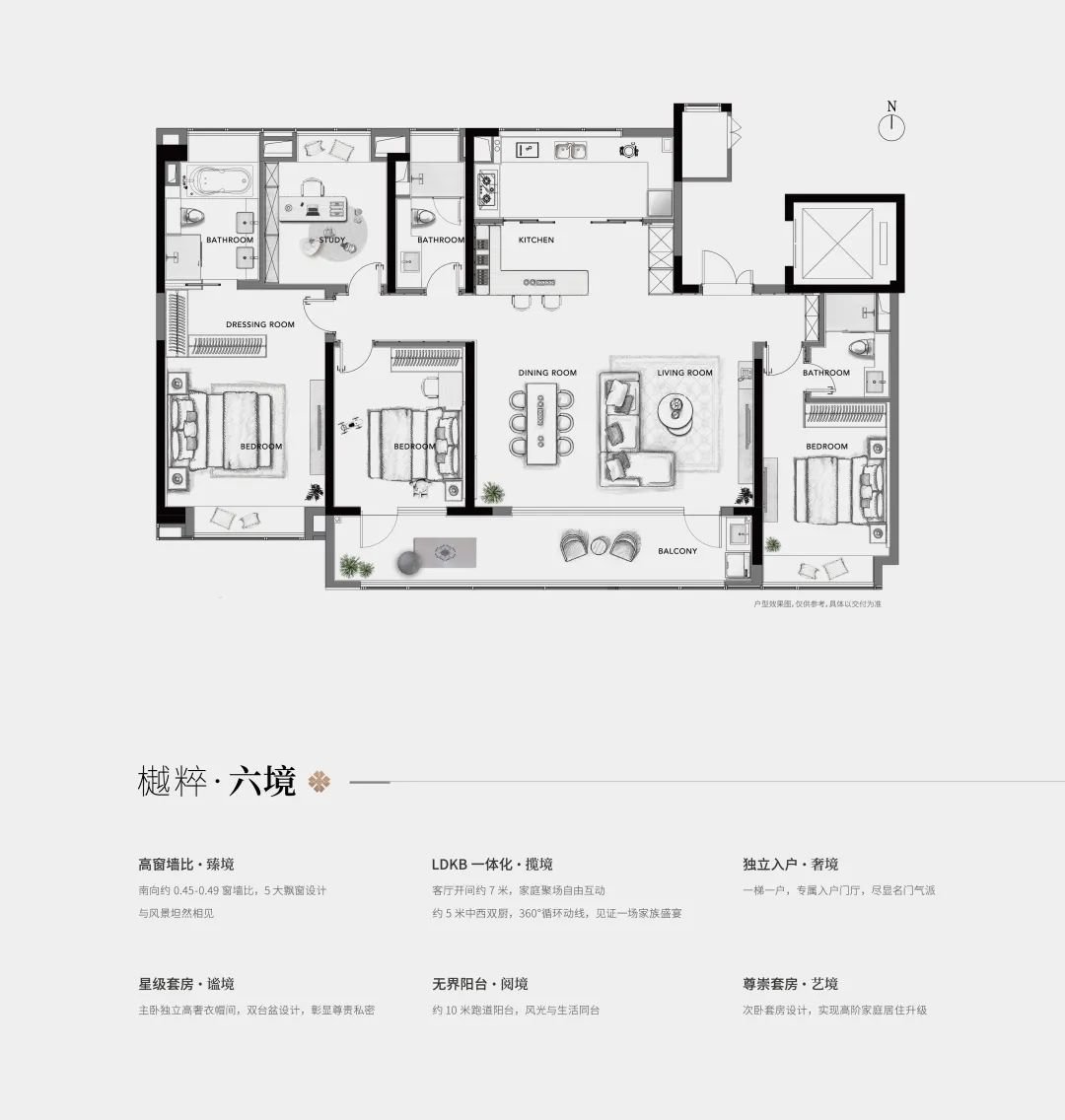 金基中北朗樾府体量不大,共规划4栋21-30F住宅,约60-80米超大楼间距,打造3 2科技住宅。