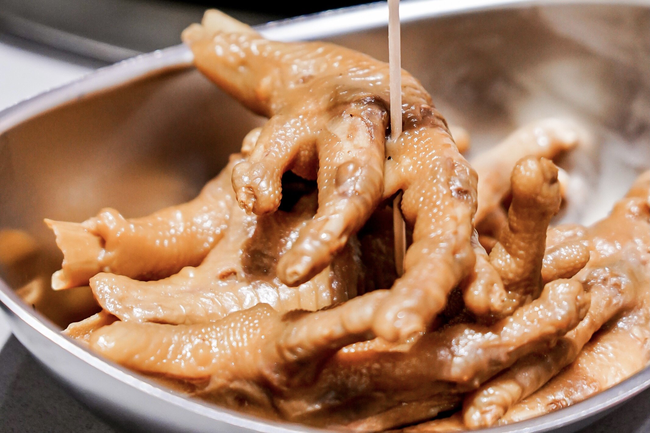 卤味最近成了辣火锅捧起的新星,这个“香卤耙耙大鸡爪”煮足2分钟再下筷子,一口软糯脱骨,咬到嘴里辣味、卤味混着糯唧唧的鸡爪肉。