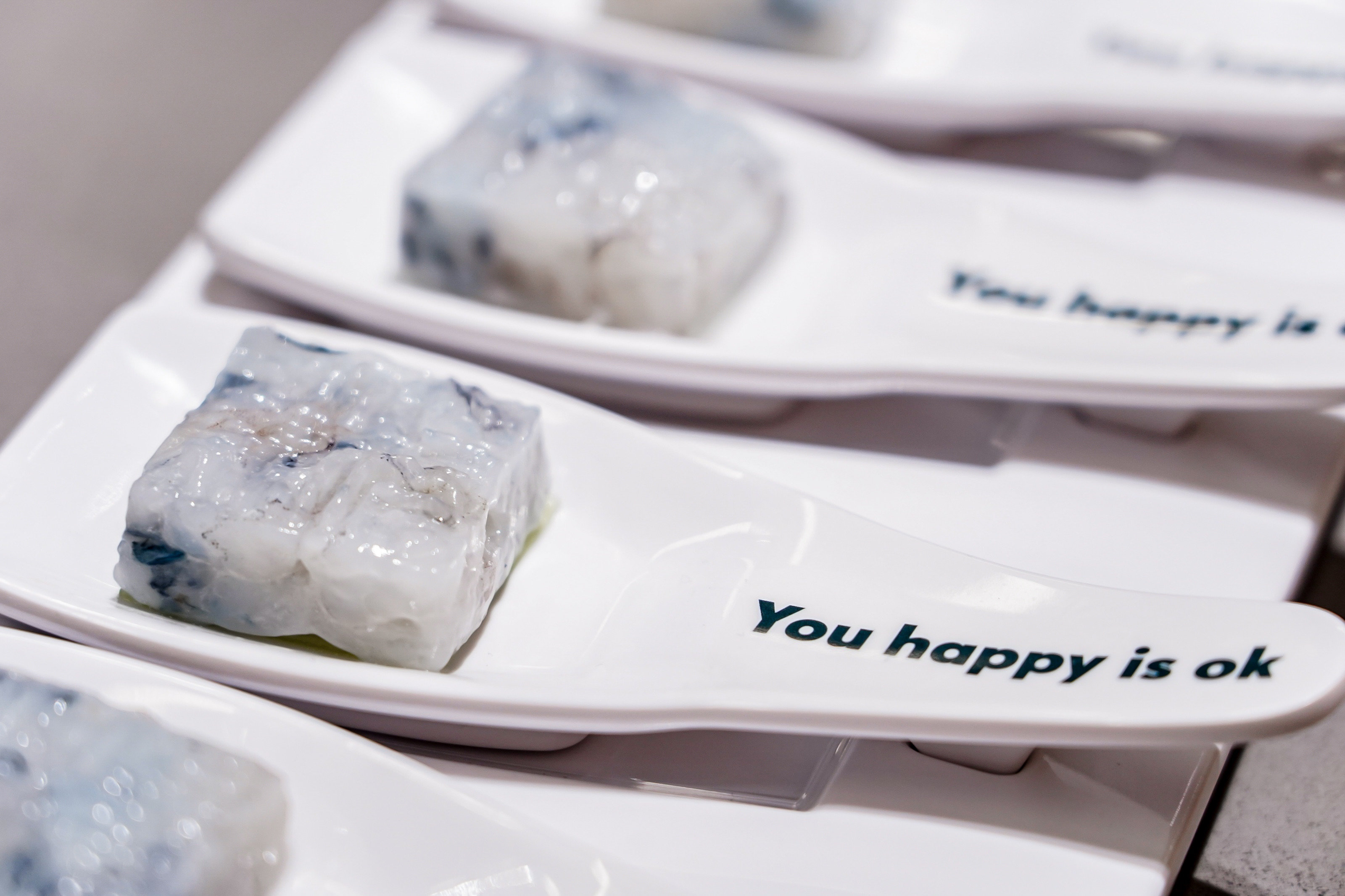 喜欢吃虾的别错过“纯手打的虎虾滑”!方方正正的每一块里都住着很多虾,一口一颗可以吃到肉质紧实的整虾。