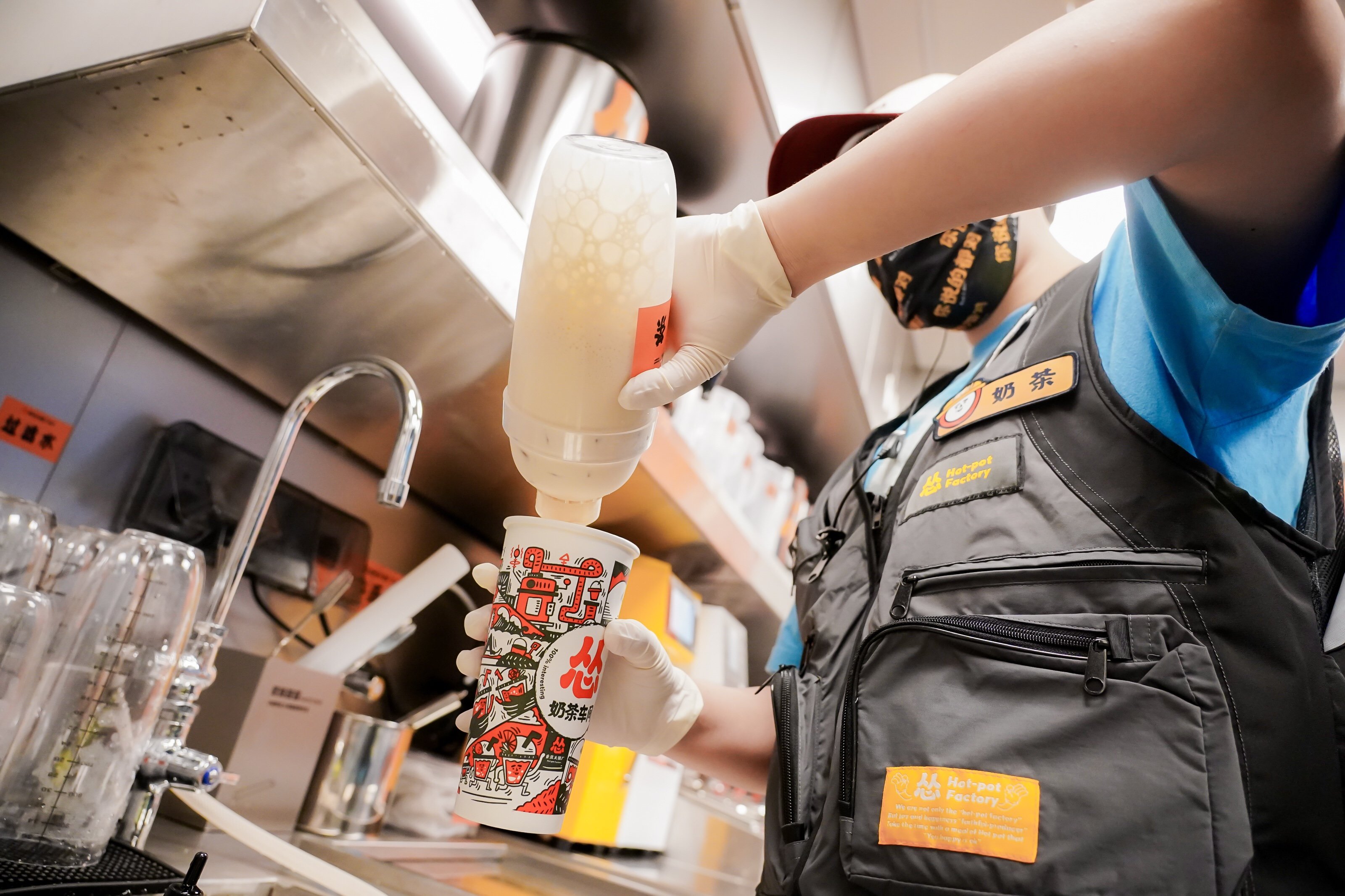 怂重庆火锅厂奉上自营的奶茶车间,主推“开心加料奶茶”。