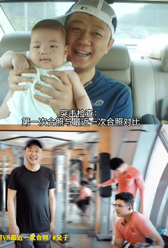 郭涛在一周前也在社交平台晒出了与石头的一组合照对比。第一张是郭涛年轻的时候坐在车里抱着还是个大胖小子的石头。而第二张则是爷俩在健身房的照片,石头穿着红色运动T恤正在“举铁”,郭涛在一旁开怀大笑,看得出来父子二人关系就像哥们一样好。