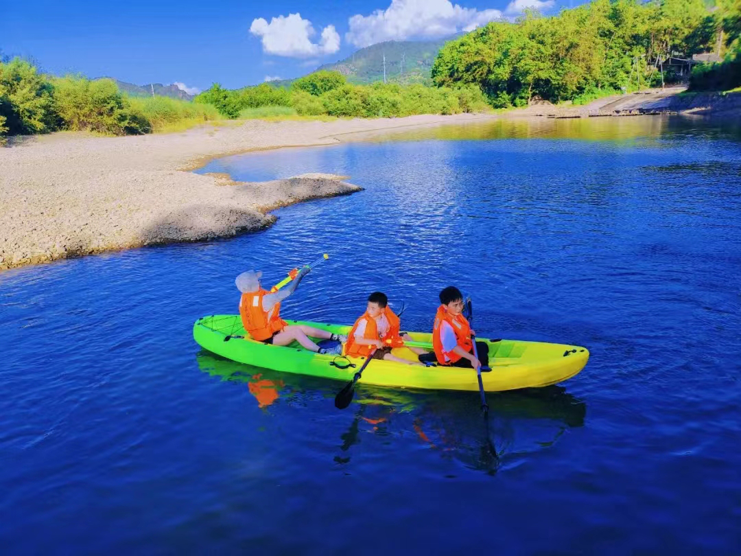 十一黄金周,赵岙村仙沙岛户外拓展基地里,小朋友们在草地上奔跑追逐,大人们在永安溪中泛舟嬉戏,享受着舒适惬意的假期时光。