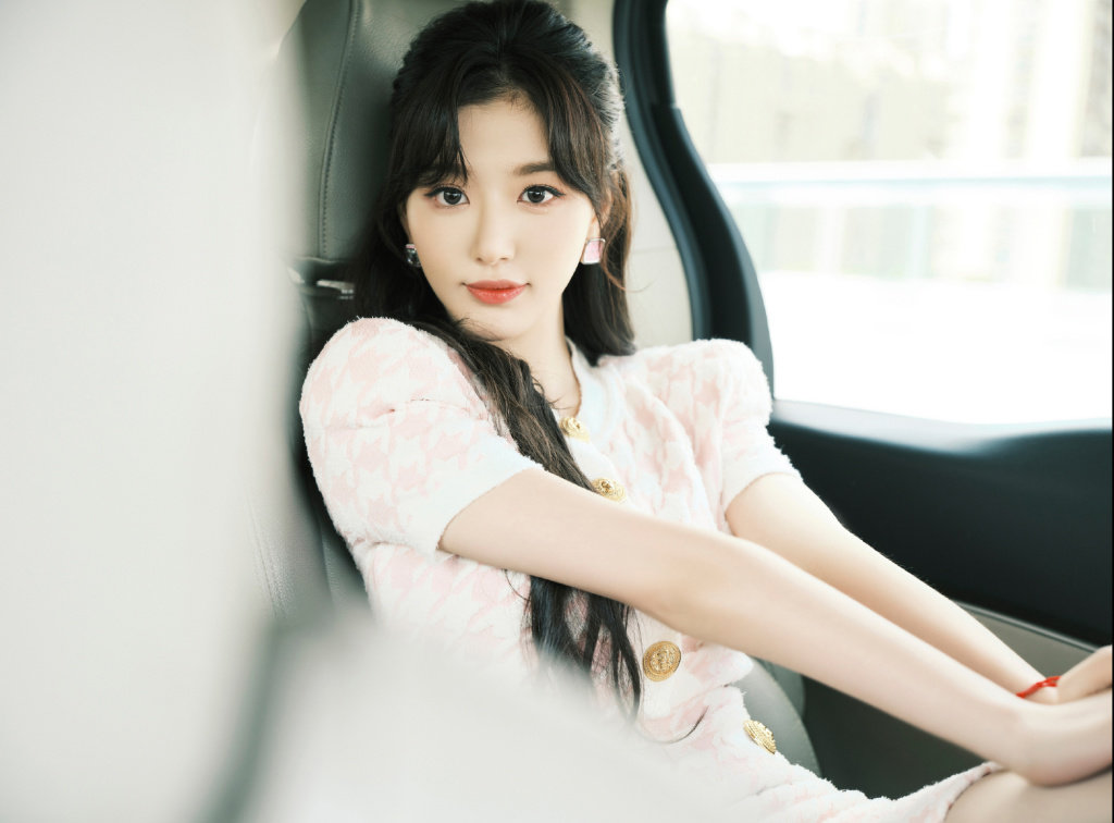 2022年10月9日,孔雪儿车内拍摄小香风造型写真,综艺《听说很好吃》热播