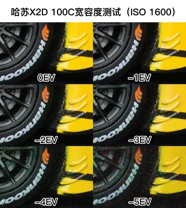 在ISO 1600时,哈苏X2D 100C的宽容度表现比较好。直到-3EV开始,画面出现轻微偏色,但是并没有明显增加的噪点。从-4EV开始,噪点增加并且画面偏色的问题就比较明显了。