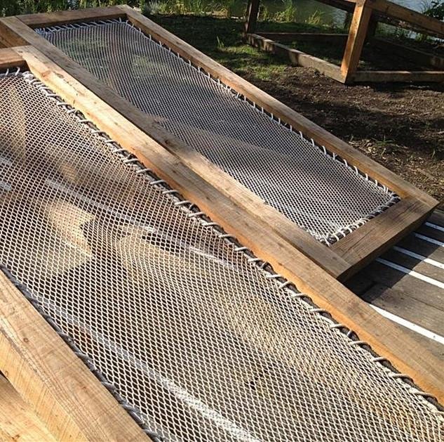 首先相比普通的户外家具,这样的一张户外网床设计,耐用性会更强。因为不论是户外木制家具还是其他材质家具,长期经受风吹日晒的,很容易开裂或被损坏。而户外网床由绳索、钢管以及五金连接件固定连接,除了人为破坏,使用寿命还是可观的。