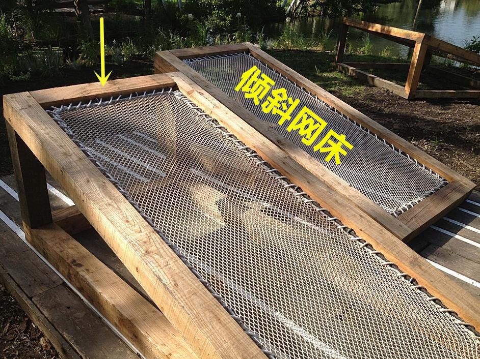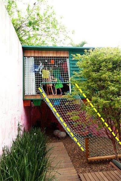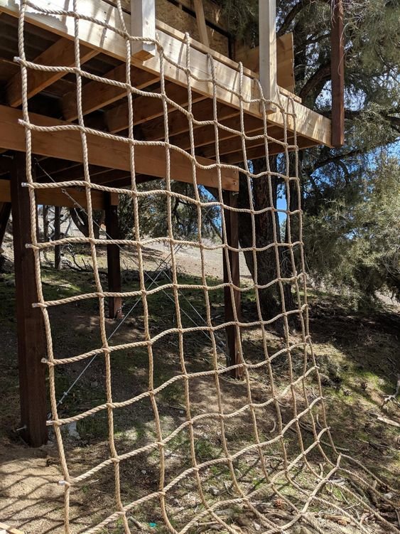 或者作为户外攀爬网。高度1米左右,倾斜安装,家长可以带着孩子在攀爬网上玩耍,小院变身游乐场,爬上爬下也很安全。