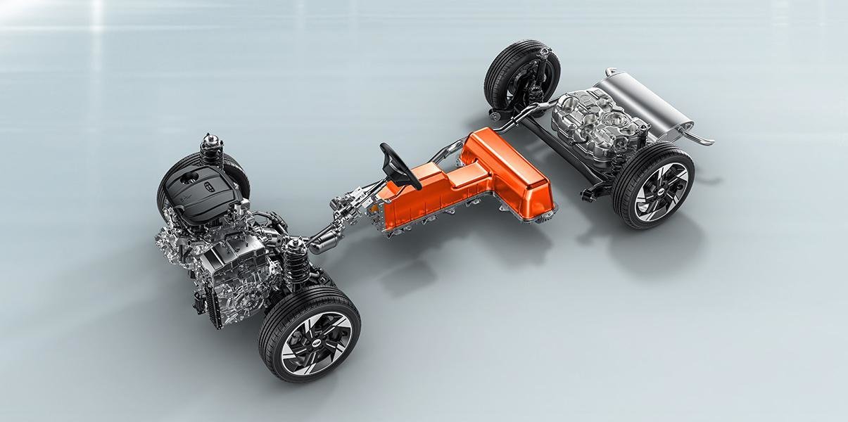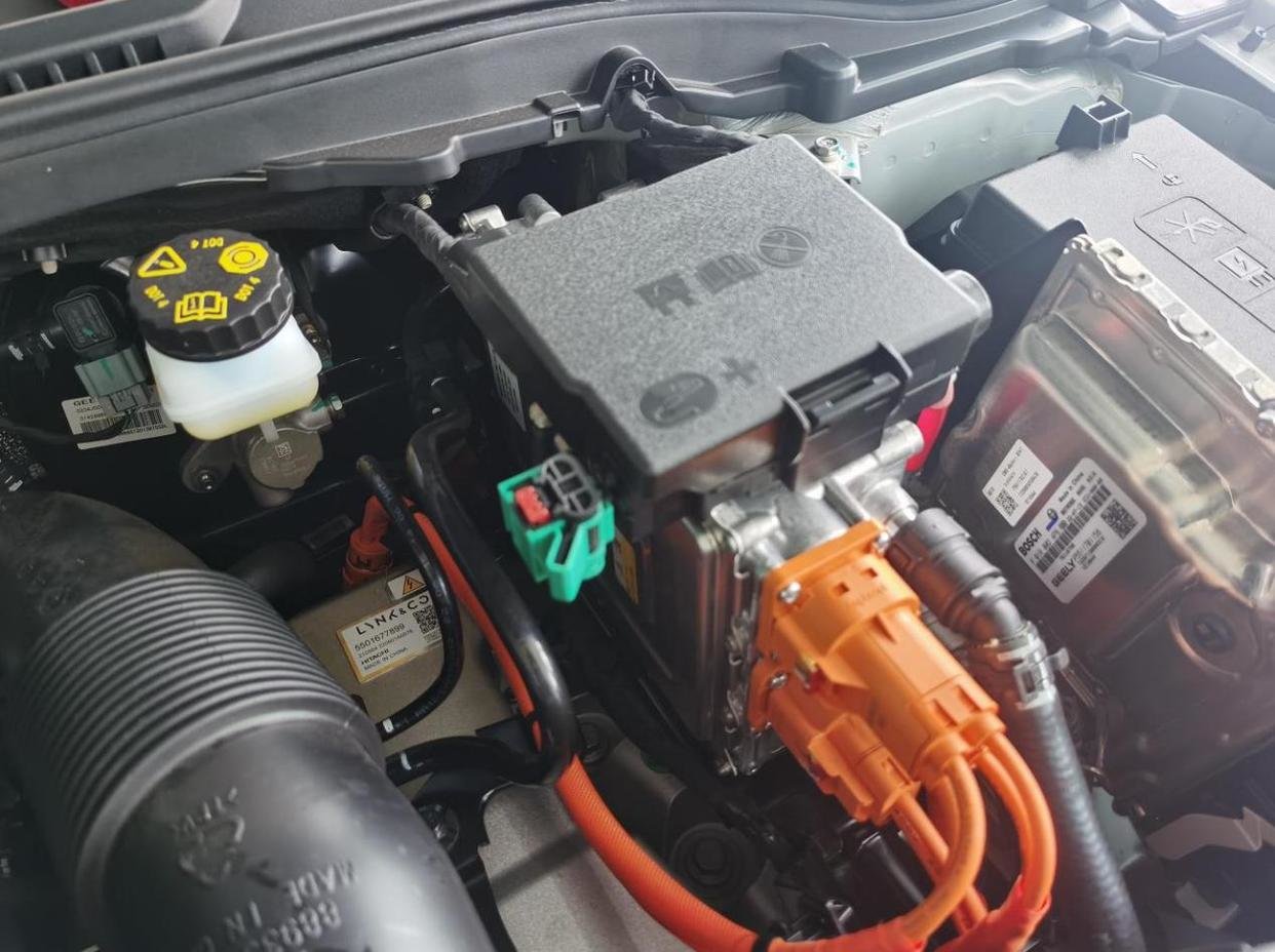 标配的水冷涡轮增压中冷器可以降低压缩进气时的温度,温度越低,进入气缸的混合气燃烧效率更高,不易产生爆震,将进气温度降低到50度以下来增加功率。其次使用了小惯量电控涡轮增压器,只要少量的发动机废气就可以启动,吉利将峰扭调教到了2000-3500转/分输出,更低转速让电机工作。