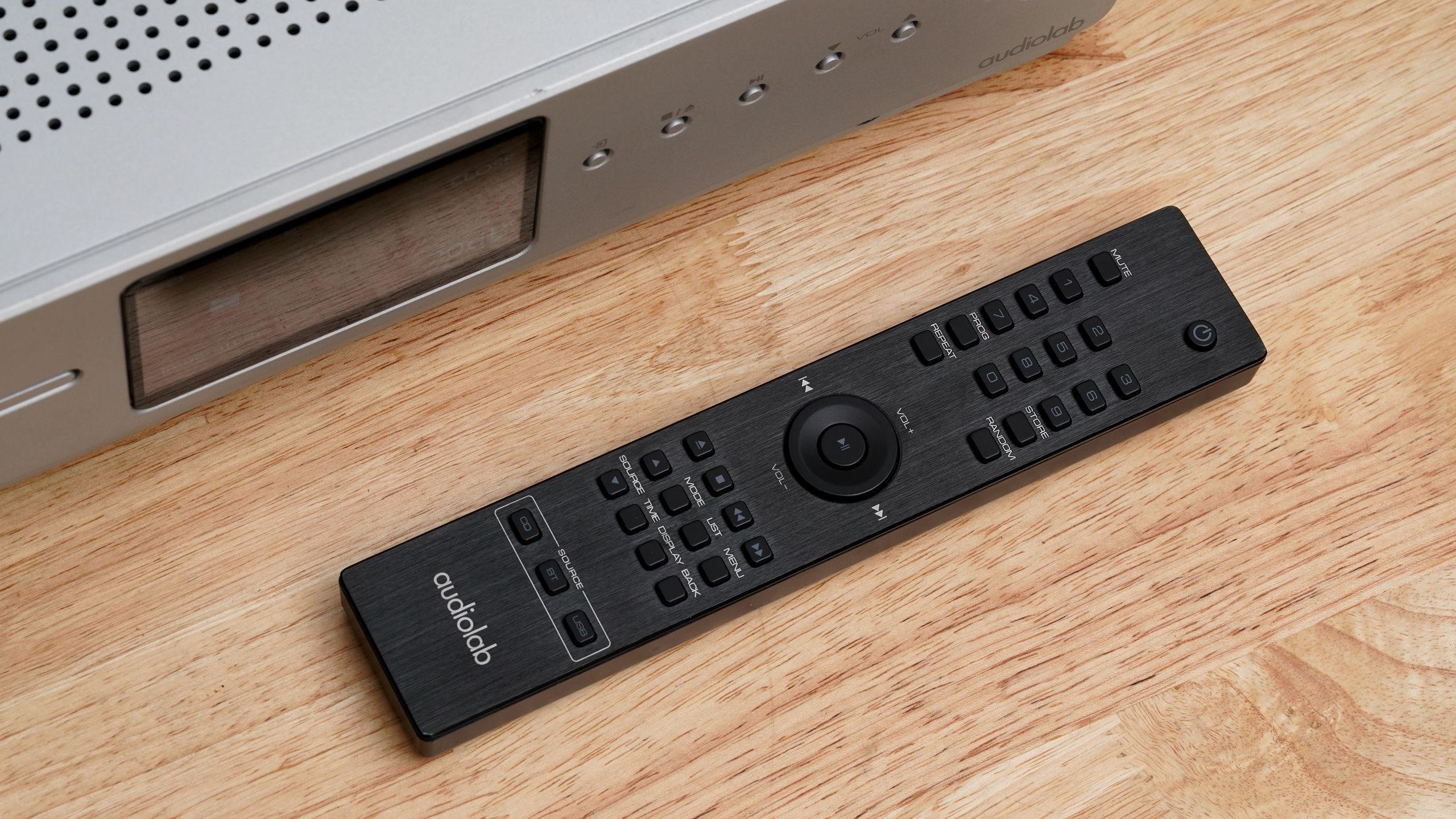 遥控外观中规中矩,表面做了拉丝工艺。遥控分了几个功能区域,最上方为CD控制,中间为上下曲选择及音量调整,下方为机器设定,如信号输入、菜单、显示、前后级/合并机切换等,最下方则是把最常用的CD、蓝牙、USB输入做了单独的按键,这一点还是考虑蛮周到的。