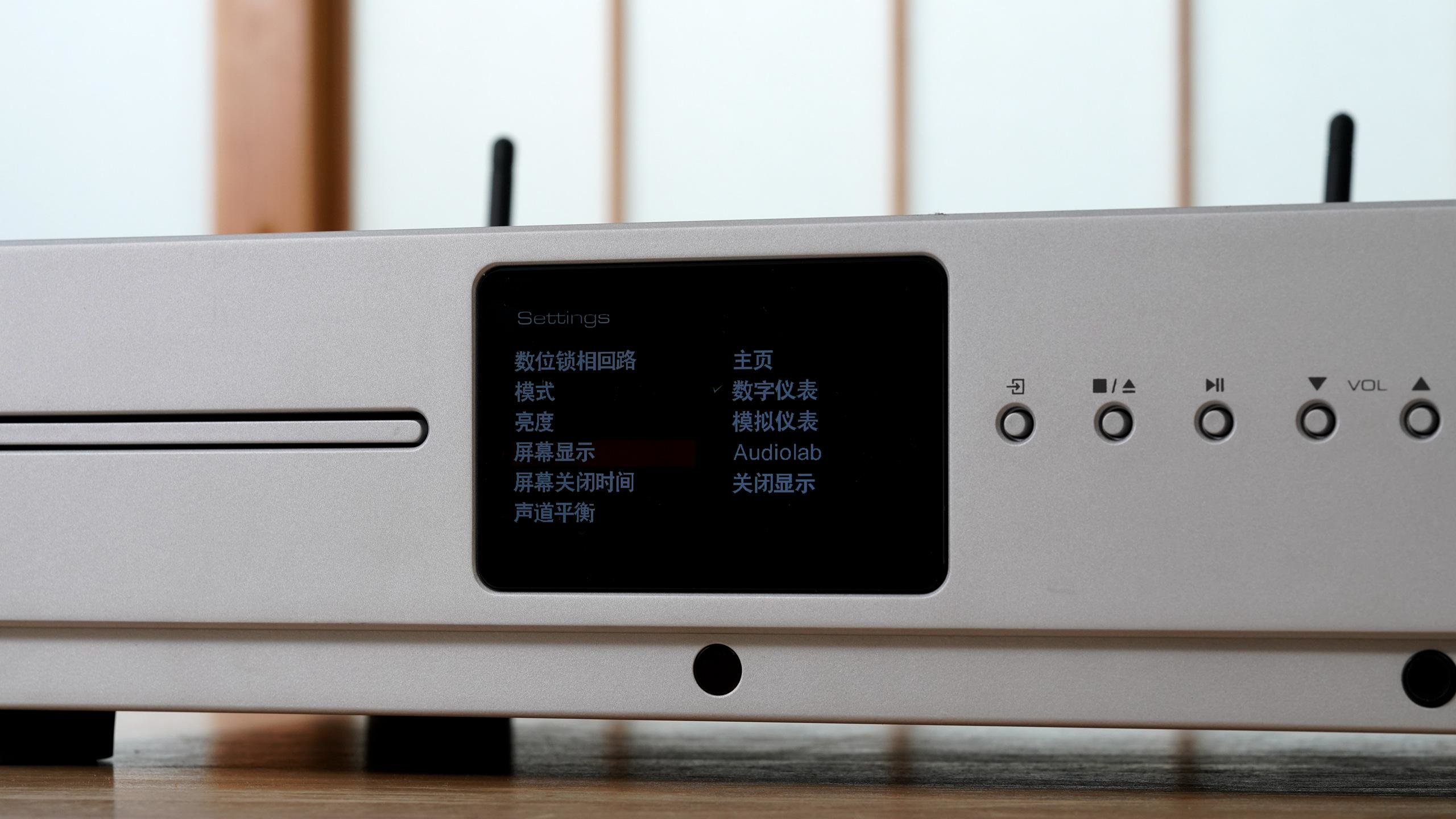 作为现代机型,一块漂亮的屏幕是少不了的,可以在主画面、指针式VU、数字动态VU、Audiolab主题等四种屏幕显示模式切换,也可以关闭屏幕显示以得到更纯净的音频信号输出。个人来说最喜欢是VU式界面,很有复古的味道。