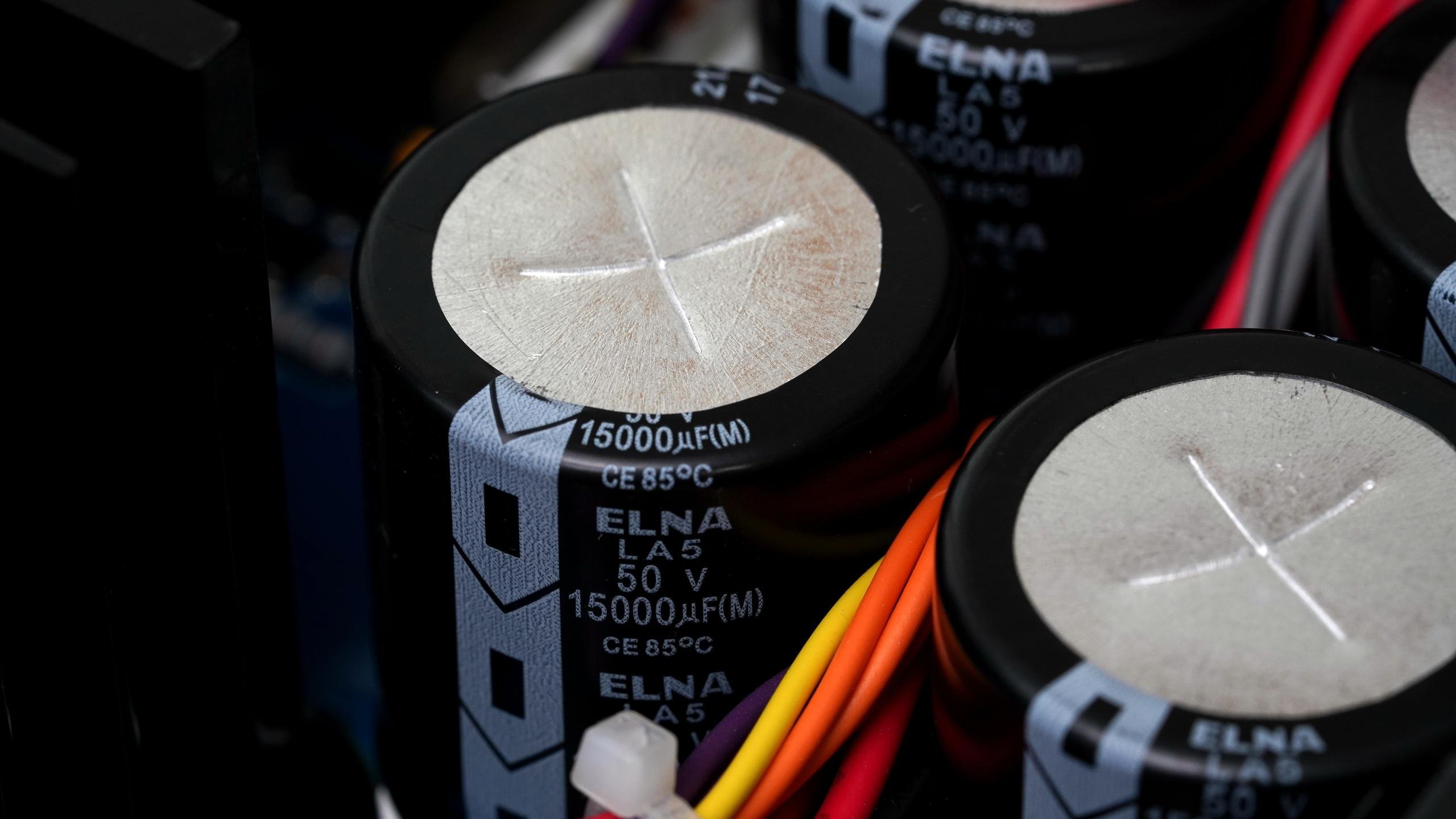 滤波电容为四颗50V/15000μF的Elna高速低阻音频电容,总容量为60000μF,提供了充足的电源能量供应,提升控制力及动态表现。