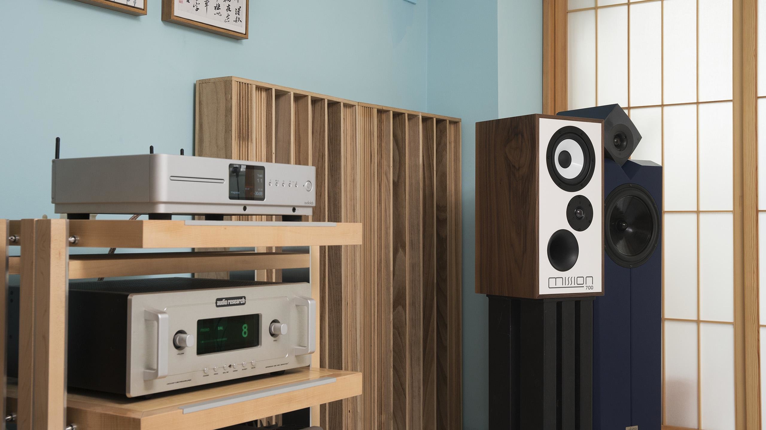 来到音质及功放部分,由于其功率并不算高,因此我主要搭配Mission 700(灵敏度86dB,阻抗8Ω)来试听,无论是价位还是从实际应用来说应该都是比较合适的,旁边的阿卡佩拉独角兽MKII就没有上场了。以高码率数字音乐为主,这样可以最大程度发挥其应有水准。