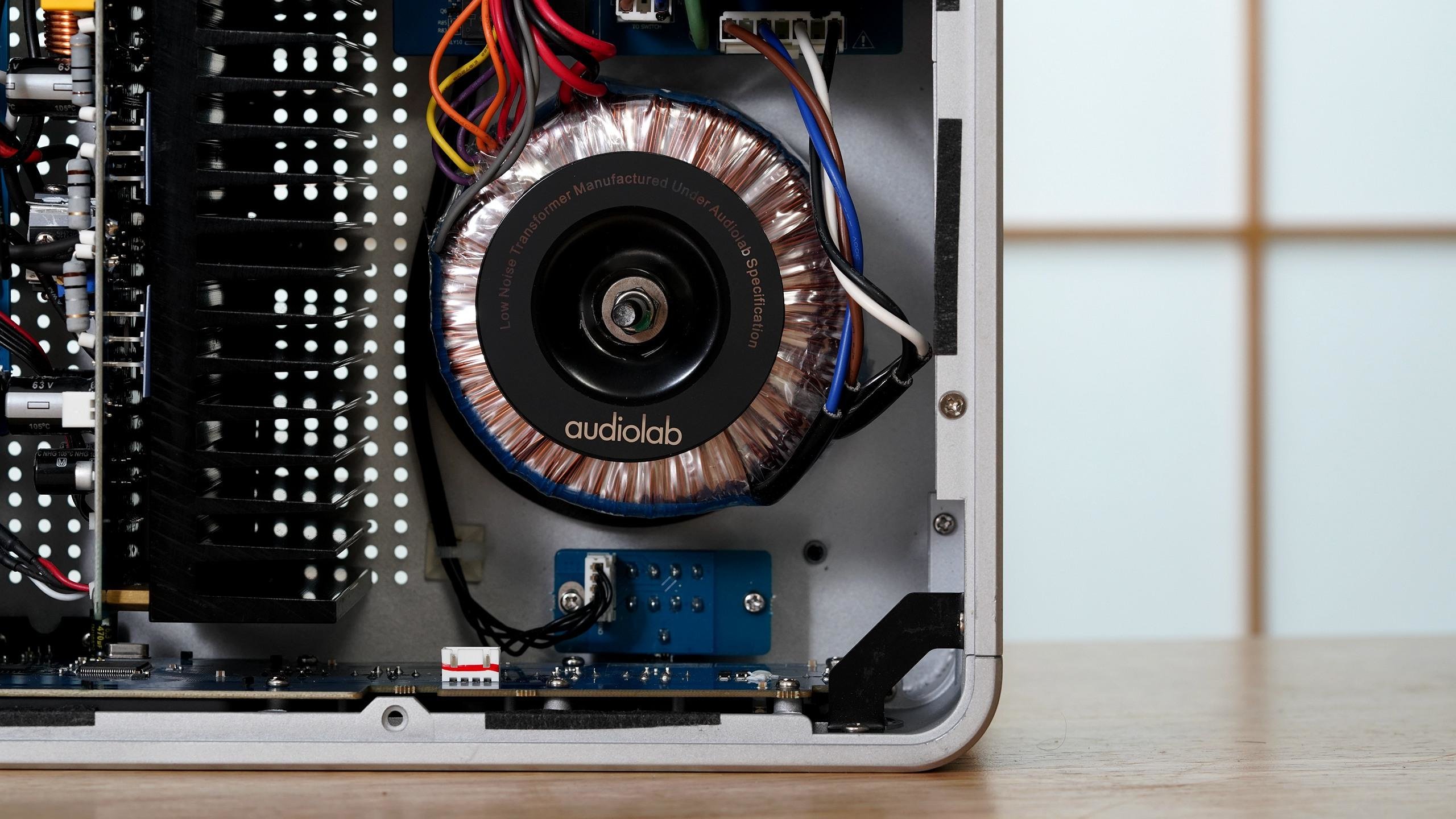 傲立Omnia采用了AB类放大,每声道使用了一对安森美MJL3281A/MJL1302A芯片,功率为50W*2(8Ω),持续电流输出可达9A,对于大部分音箱来说已经够用。电源为Noratel箭猪环形变压器,五个独立绕组分别为后级、前级、解码、控制电路供电,避免音频受到过多干扰。