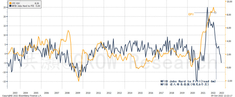 图表1: NFIB职位空缺越来越容易被填补,预示着美国CPI正在见顶。