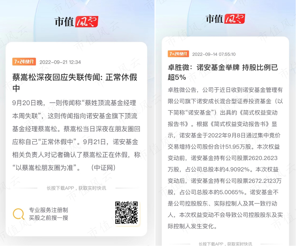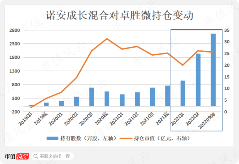 以9月23日收盘价计算,卓胜微持仓市值达到25亿,为诺安成长的第二大重仓。