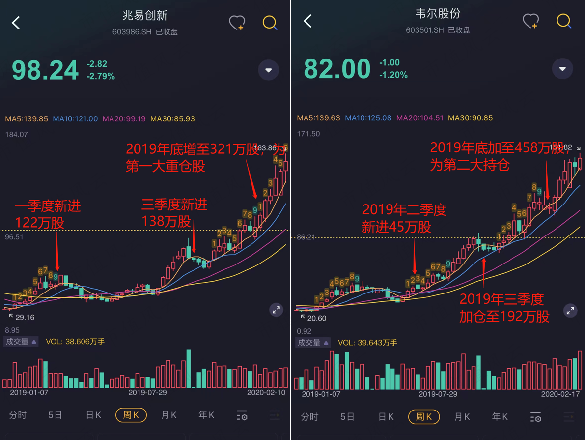 最后,“逆势投资是痛苦的”这句话是否够格呢?看看韦尔股份和兆易创新的操作,基金经理更像是一个右侧交易者,更擅长顺势加仓。