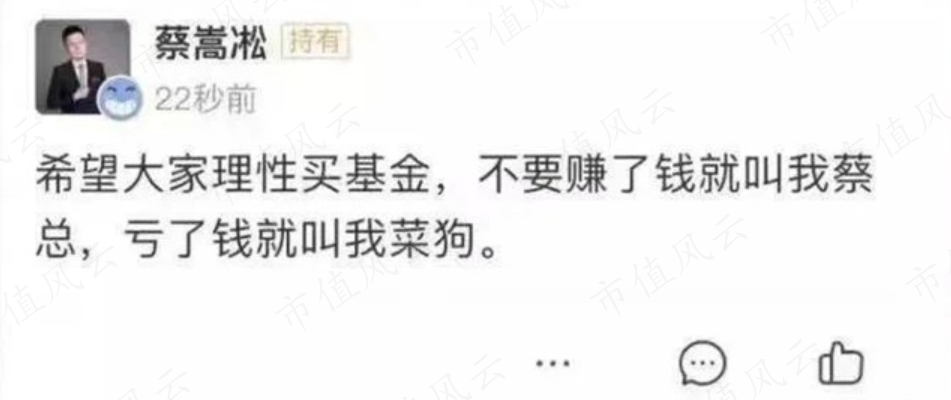 这句话在蔡嵩松身上体现地淋漓尽致:赚了叫蔡总,亏了叫菜狗。