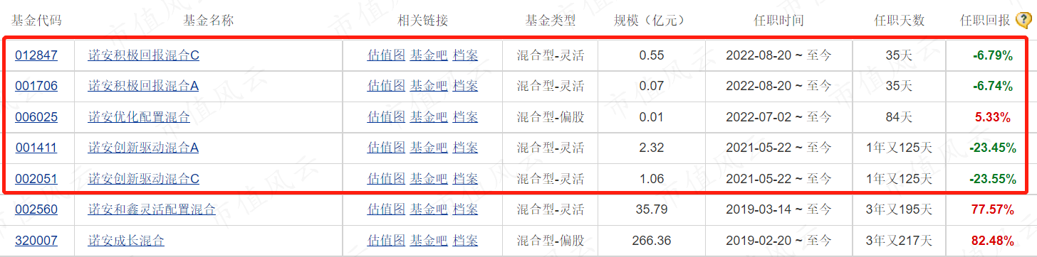 今年7、8两月,蔡嵩松又接手了两只迷你基金,其中$诺安优化配置混合(006025.OF)$规模甚至仅0.01亿,诺安积极回报混合A/C(001706.OF/012847.OF)规模也分别只有0.07亿、0.55亿。