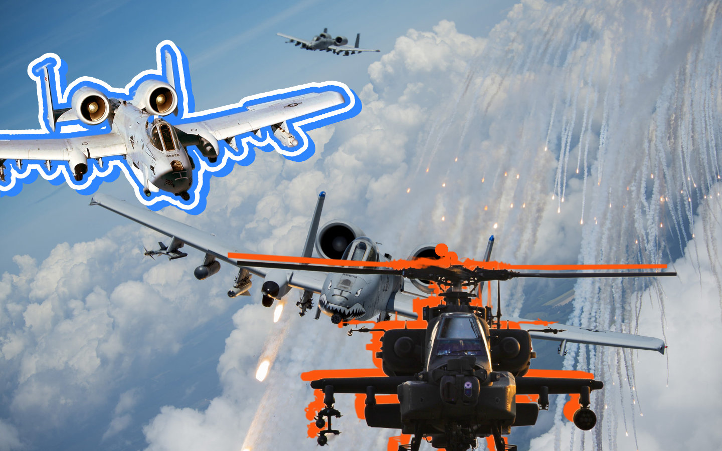 A-10疣猪攻击机和AH-64阿帕奇武装直升机都是久负盛名的美国明星战机,都在大大小小各种战斗中露过脸,都有一大批粉丝。如果你现在问我,A-10和阿帕奇如果狭路相逢,哪个能把对方击落?我只能回答你这是个好问题,但可惜我给不出答案。