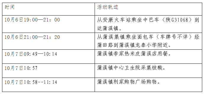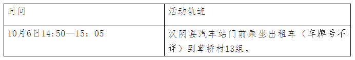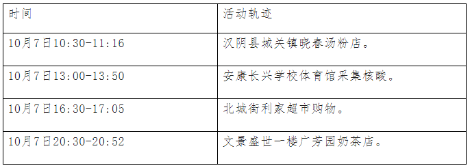 根据流调情况,现将外市核酸检测阳性病例涉及密切接触者在汉阴县的公共场所活动轨迹公布如下:
