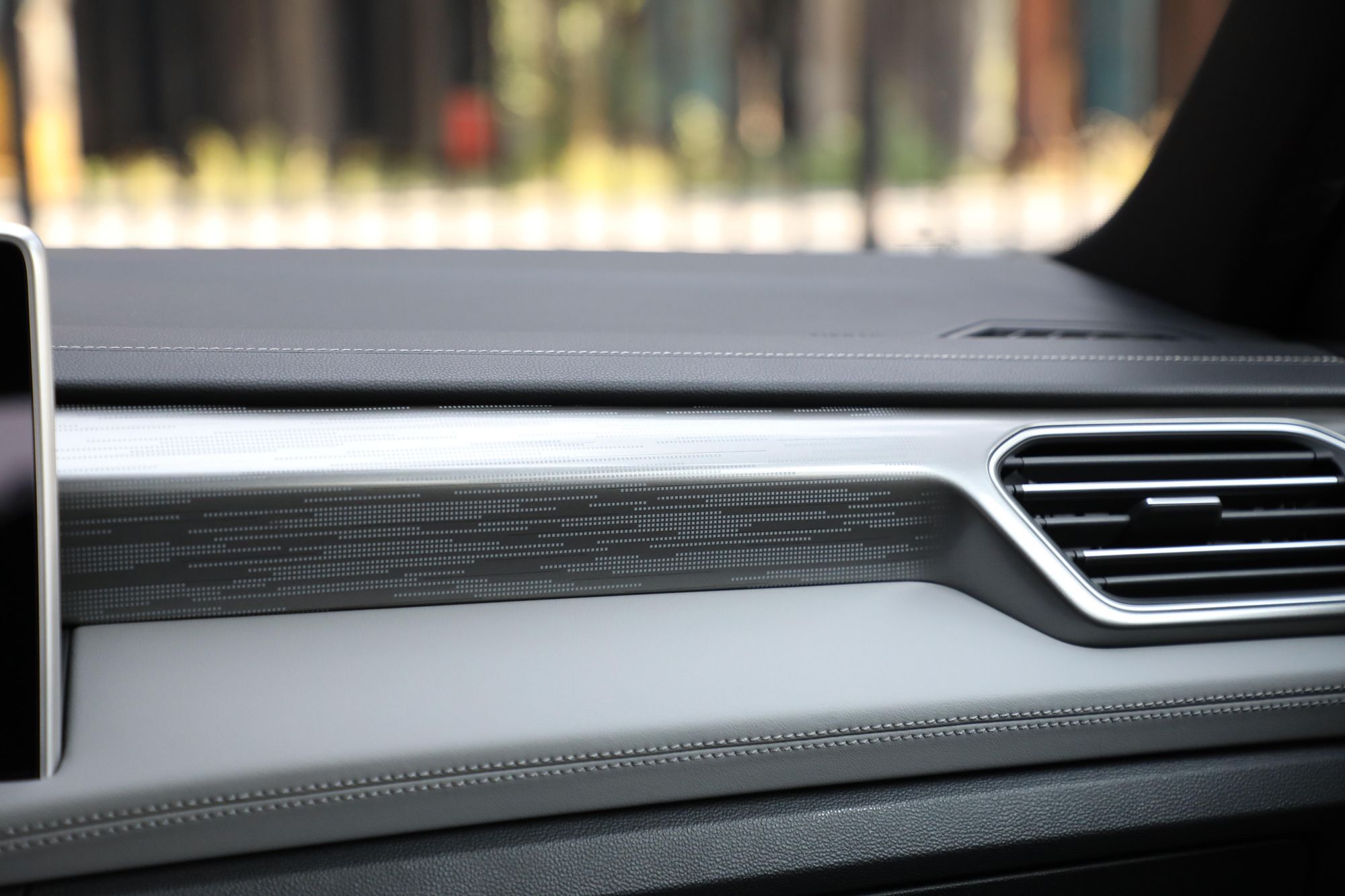 氛围灯由老款车型10色可调升级为30色可调,新款探岳的氛围灯甚至可以透过副驾驶前方的装饰板映衬出来,细节感做得很出色。另外在挡把区域还设计了两个卡槽,可以随手放一些高速通行卡或发票,细节考虑的很周到。