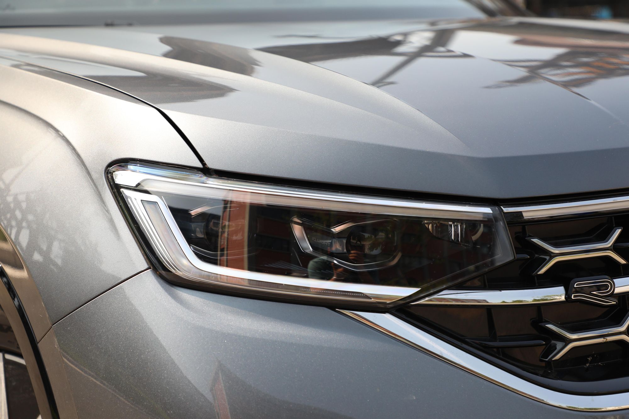 新款探岳的前大灯造型更加修长,远近光灯都采用了LED光源并配有透镜,不变的是前大灯与前中网依旧采用一体式设计,进一步拉伸了车头的视觉宽度。